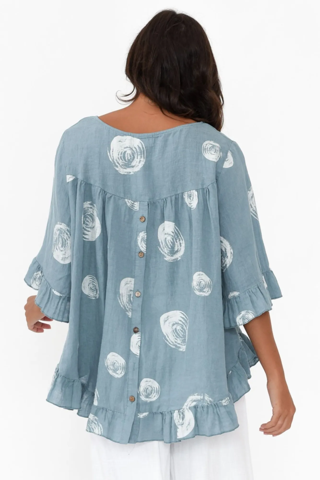 Linen Tops<Cali and Co Fitzgerald Blue Spot Linen Frill Top
