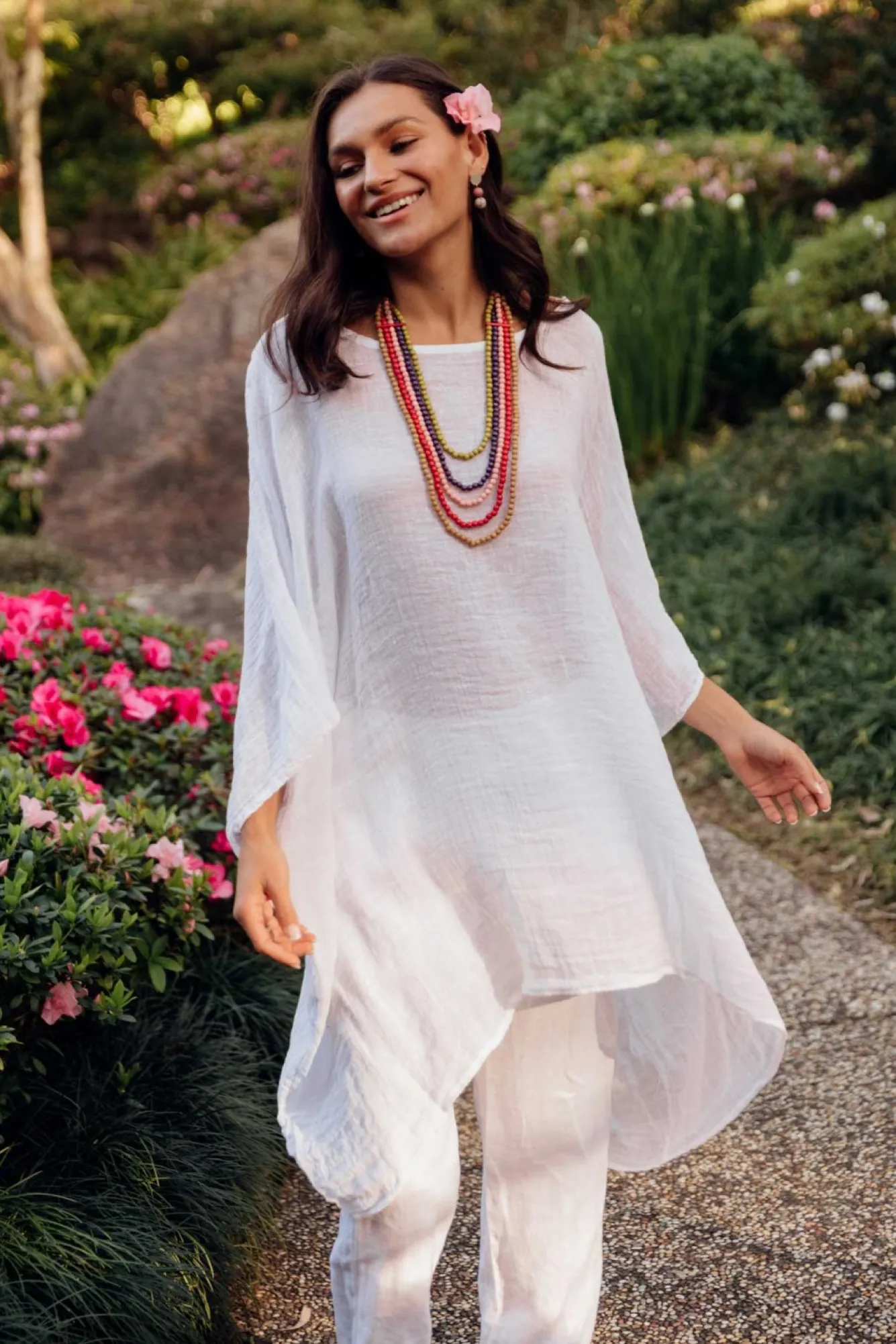 Linen Tops<Donna Donna Noemi White Linen Kaftan Tunic