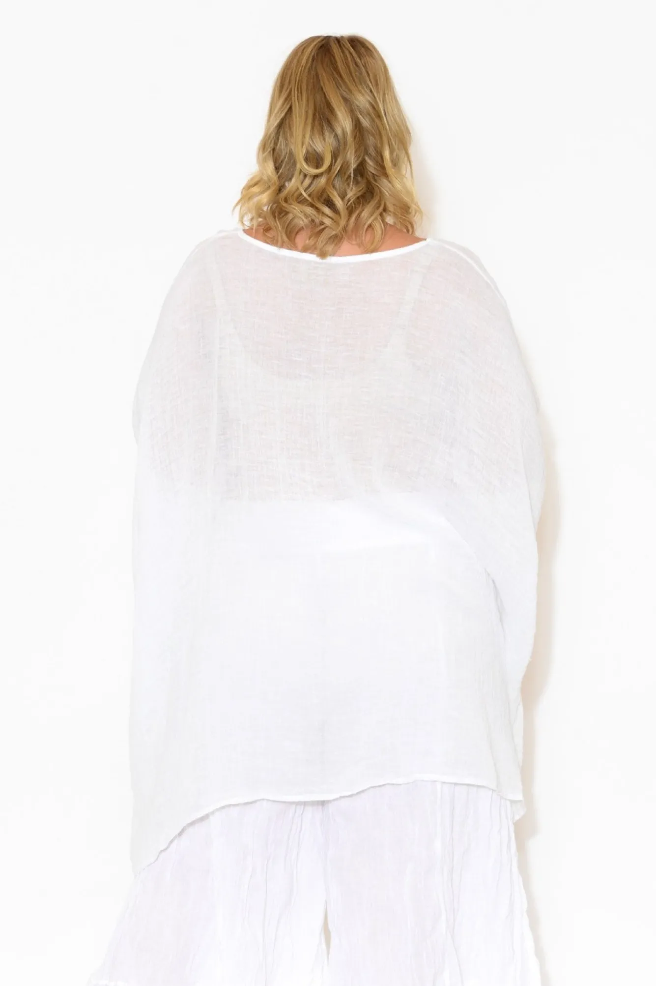 Fit: One Size. Oversized Style. Refer To Size & Fit Tab Below For Specific Size RecommendationNNfabric: 100% LinenNgarment Handcrafted In Italy From Quality Breathable LinenNsimple Round Neckline With Half Length Batwing SleevesNrectangular Cut Fabric Creates Dramatic Draping SilhouetteNbelow Hip Length GarmentNNcare: Cool Gentle Hand Wash RecommendedNNcolour: Crisp WhiteNNstyle Tip: This Fabric Is Partially Sheer. Pair With Your Favourite Camisole For Added Comfort Or Use As Beach Throw-Over.