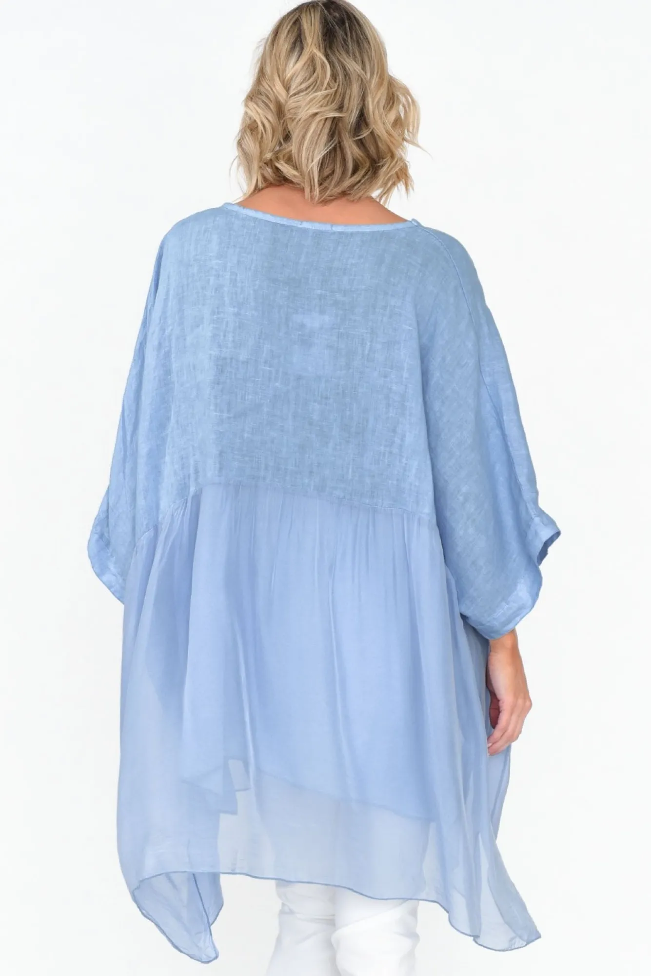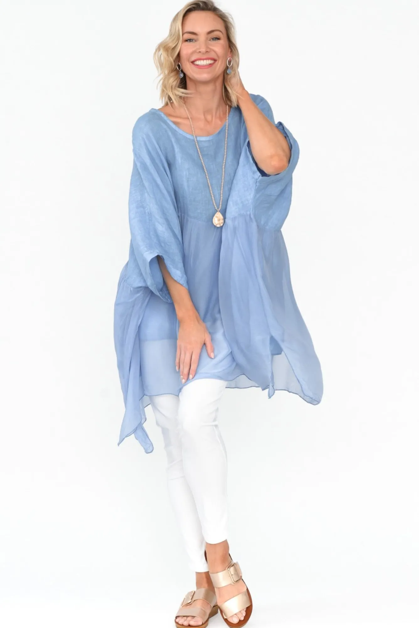 Fit: Oversized Fit. Refer To Size & Fit Tab Below For Specific Size RecommendationNNfabric: 60% Linen, 30% Silk, 10% CottonNmade In Italy Using Natural Fibres And Delicate Silk, Offering Signature Breathability And A Lightweight Hand Feel Nfabric Is Semi-Sheer, We Recommend Pairing With Nude Undergarments Nround Neckline Complements The 3/4 Length Drape Sleeves Neffortless Drape Silhouette With An Elevated Silk Overlay That Cascades From The Waist NNlined With A Cotton Fabric From The Waist Nasymmetric Hemline Falls Below Hip Length NNNcare: Cool Gentle Hand Wash RecommendedNNcolour: Deep Sky Blue Shade