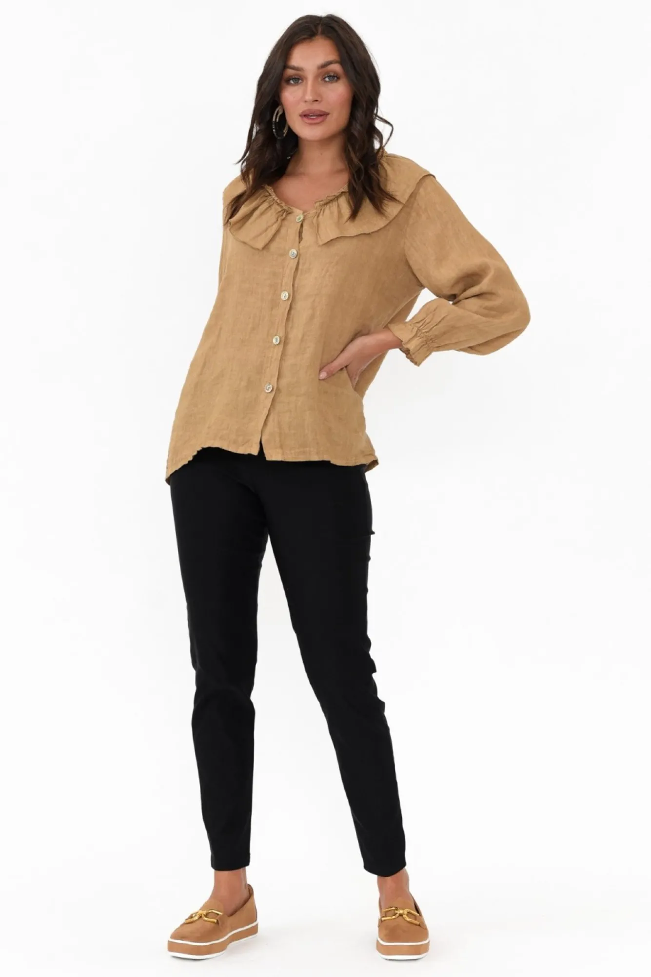 Be the first to review “Linen Tops<Fabuler Sullivan Tan Linen Frill Top” Cancel reply