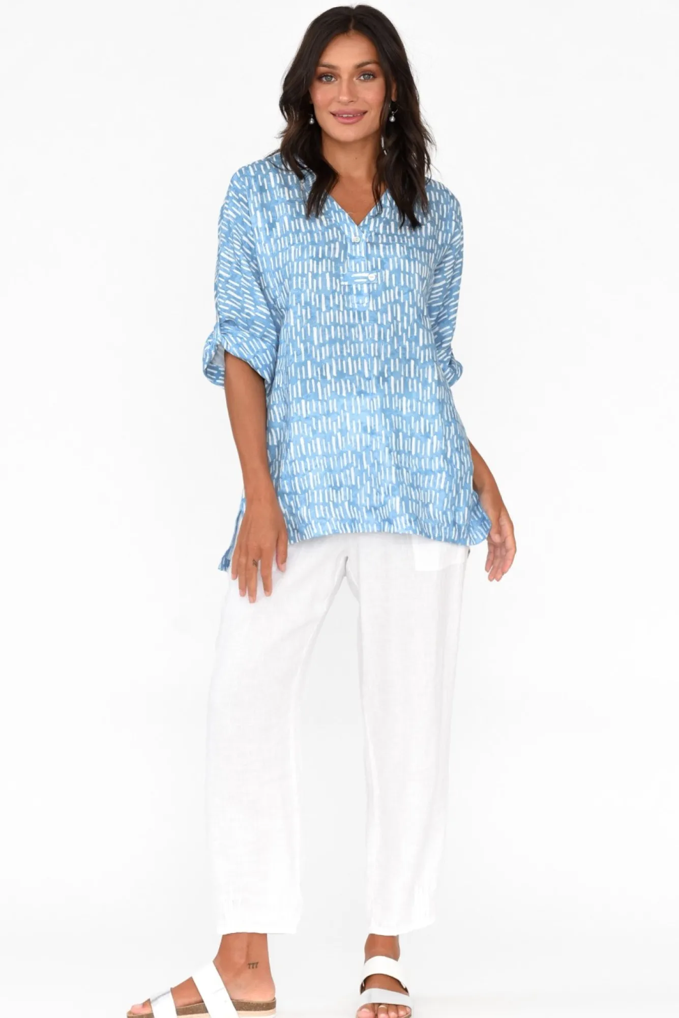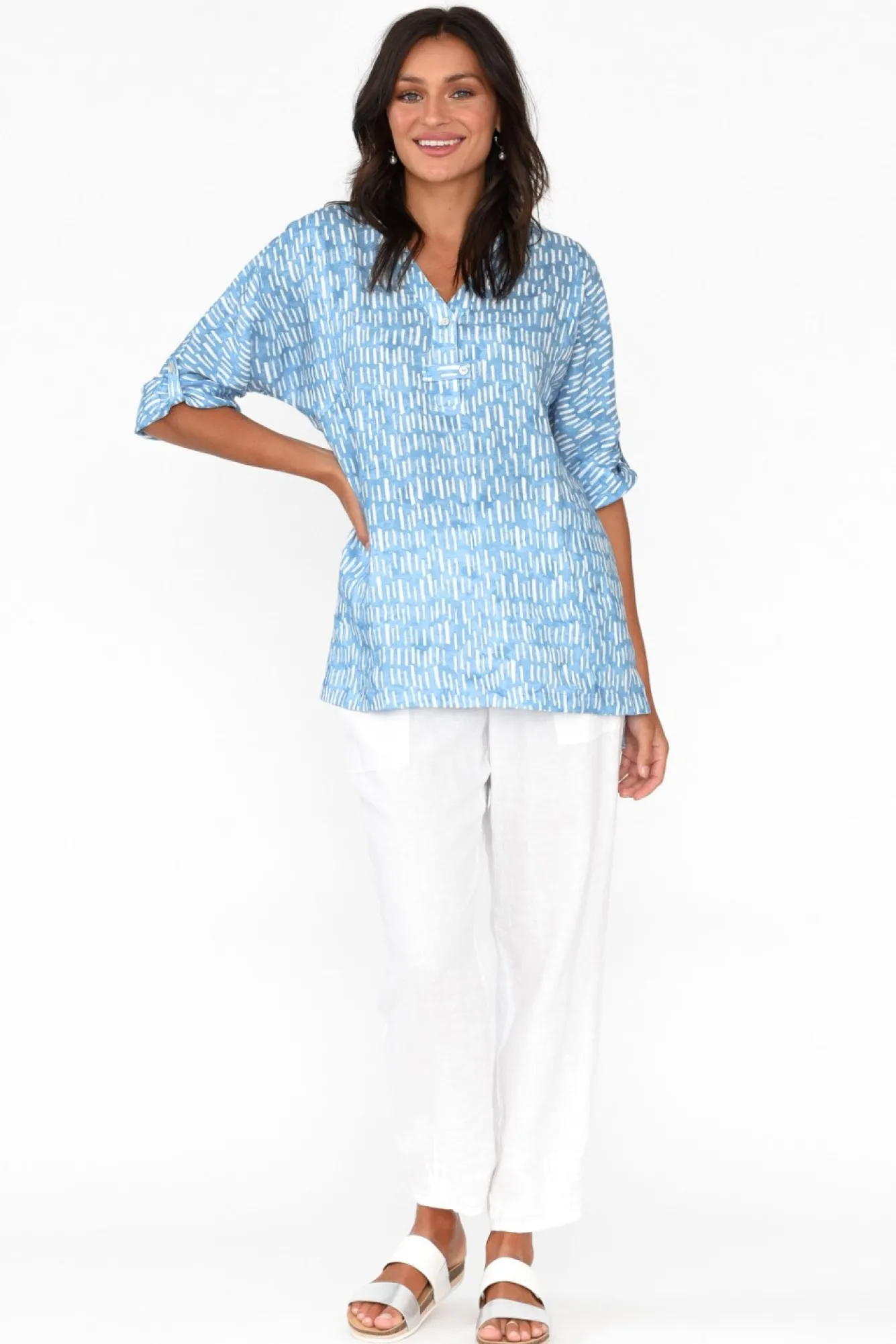 Fit: True To Size. Refer To Size & Fit Tab Below For Specific Size RecommendationNNfabric: 100% LinenNcrafted From Premium Lightweight, Breathable And Non-Stretch Linen Designed With A Classic Smooth Woven Hand Feel Nfabric Is Semi Sheer, We Recommend Pairing With Nude UndergarmentsNsoft V-Neckline Leads To A Crossover Button Detail NNstraight 3/4 Length Sleeves Can Be Rolled-Up And Secured With Button Tab NNrelaxed Straight Silhouette With 17Cm Side Splits NNstraight Hi-Lo Hemline Falls Below The HipsNNNcare: Cool Gentle Machine Wash RecommendedNNcolour: Sky Blue Base With White Stripe Print
