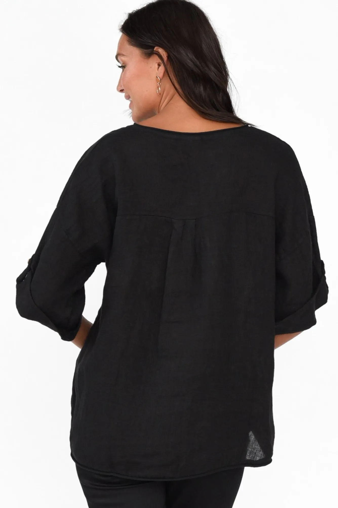 Fit: True To Size. Refer To Size & Fit Tab Below For Specific Size RecommendationNNfabric: 97% Linen, 3% Cotton Nultra-Lightweight, Breathable Linen Designed With A Non-Stretch Woven Hand FeelNfeature V-Neckline Defines The Collarbones NNcotton Trims With A Rolled Finish At The Neckline And HemNclassic Half-Length Sleeves Can Cuffed And Secured With Button Tab NNrelaxed Straight Silhouette NNhi-Lo Hem Falls To A Hip-Skimming Length NNNcare: Cool Gentle Hand Wash RecommendedNNcolour: Midnight Black Featuring A Square Glitter And Leopard Design