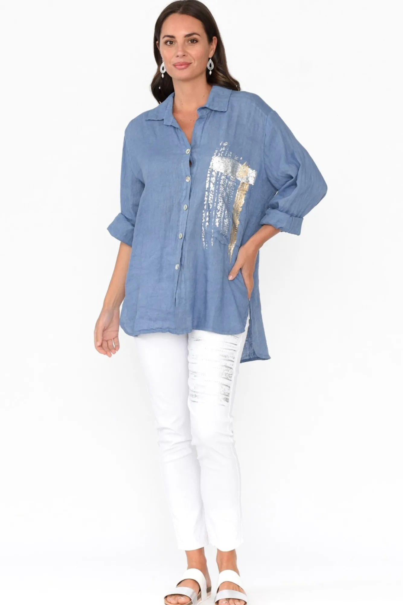 Fit: True To Size. Refer To Size & Fit Tab Below For Specific Size RecommendationNNfabric: 97% Linen, 3% Polyester Nitalian Linen Offers Ultimate Comfort With Lightweight, Breathable Properties And A Classic Woven TextureNNcollared Neckline With A Button Front NNsingle Breast Pocket Adorned With Silver And Gold EmbellishmentsNfull-Length Sleeves Finished With A Button Cuff NNrelaxed Straight Silhouette NNcurved Hi-Lo Hem Falls To A Hip-Skimming Length NNcare: Cool Gentle Machine Wash RecommendedNNcolour: Washed Blue Shade With Metallic Gold And Silver Detailing