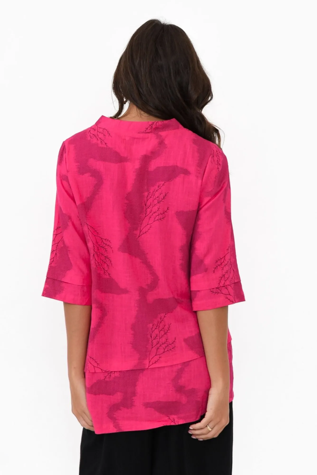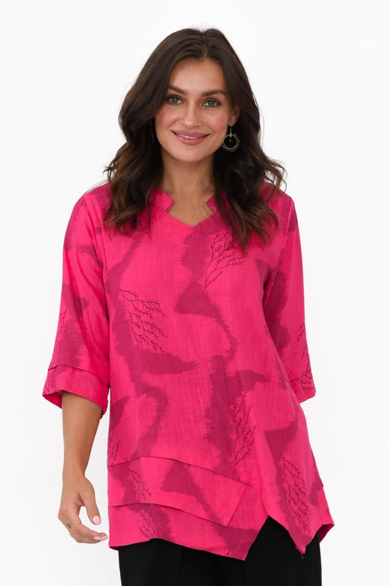 Fit: True To Size. Refer To Size & Fit Tab Below For Specific Size RecommendationNNfabric: 65% Linen, 35% CottonNconstructed From A Lightweight Linen And Cotton Blend Fabric Offers Wonderful Breathability And A Textured Hand Feel NNv-Neckline With Feature Cutout Detail NNtranseasonal 3/4 Length Sleeves Complete With Layered Cuff Neveryday A-Line Silhouette With Subtle Flaring At The Hips NNfun Layered Asymmetric Hemline Falls Below Hip Length NNNcare: Cool Gentle Hand Wash RecommendedNNcolour: Striking Hot Pink Base With Fine Abstract Line Print