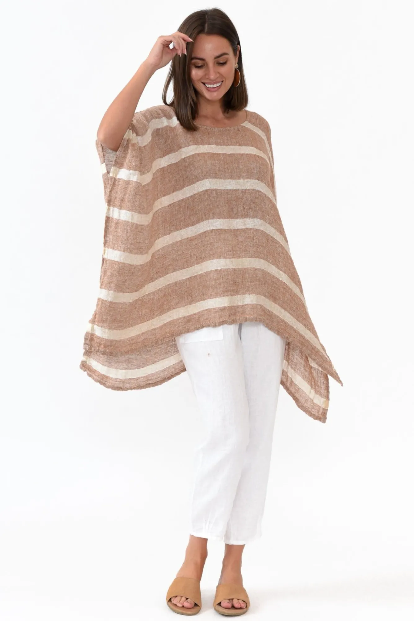 Linen Tops<Rustic Linen Monaco Rust Stripe Linen Top