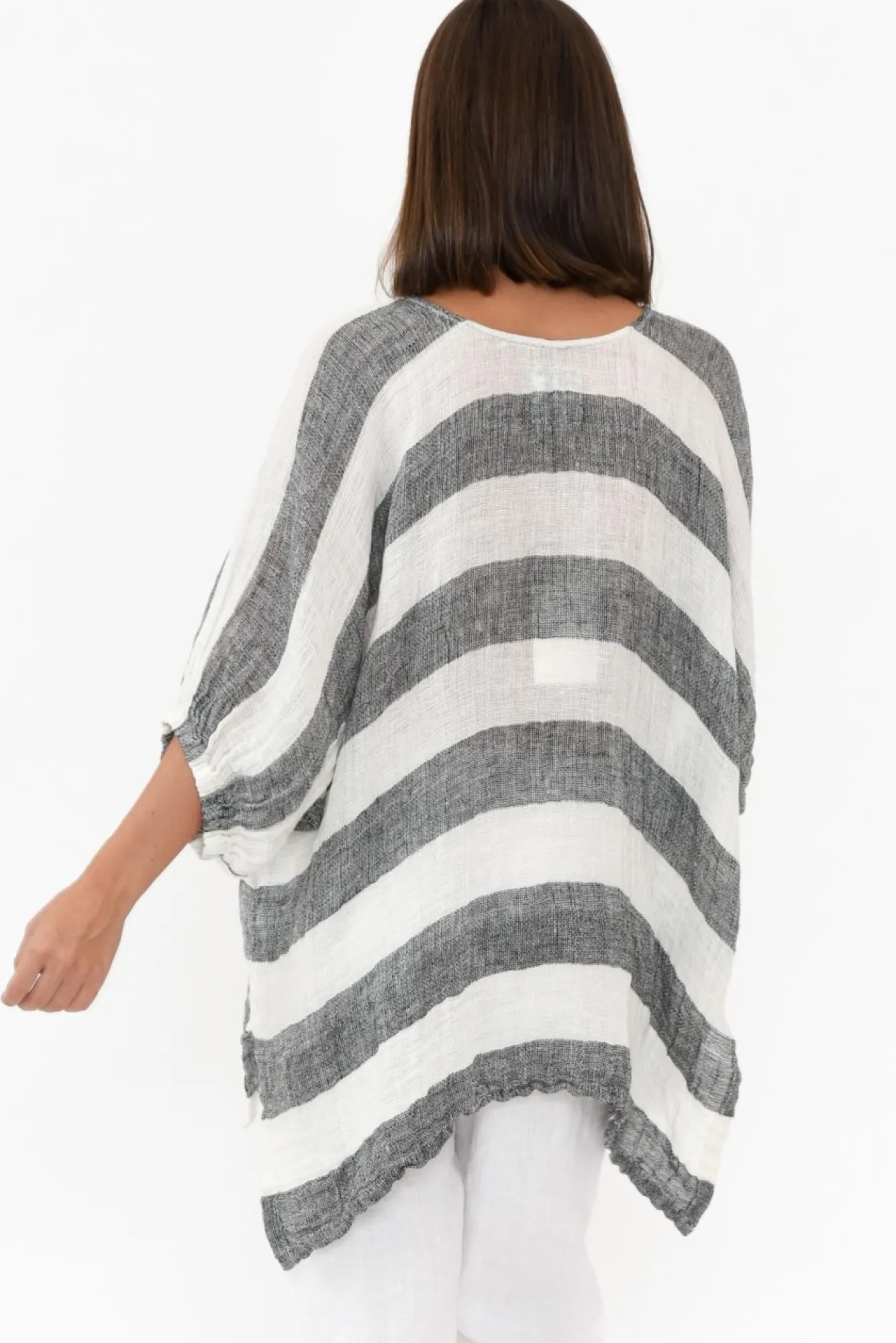 Linen Tops<Rustic Linen Nassau Black Stripe Linen Top