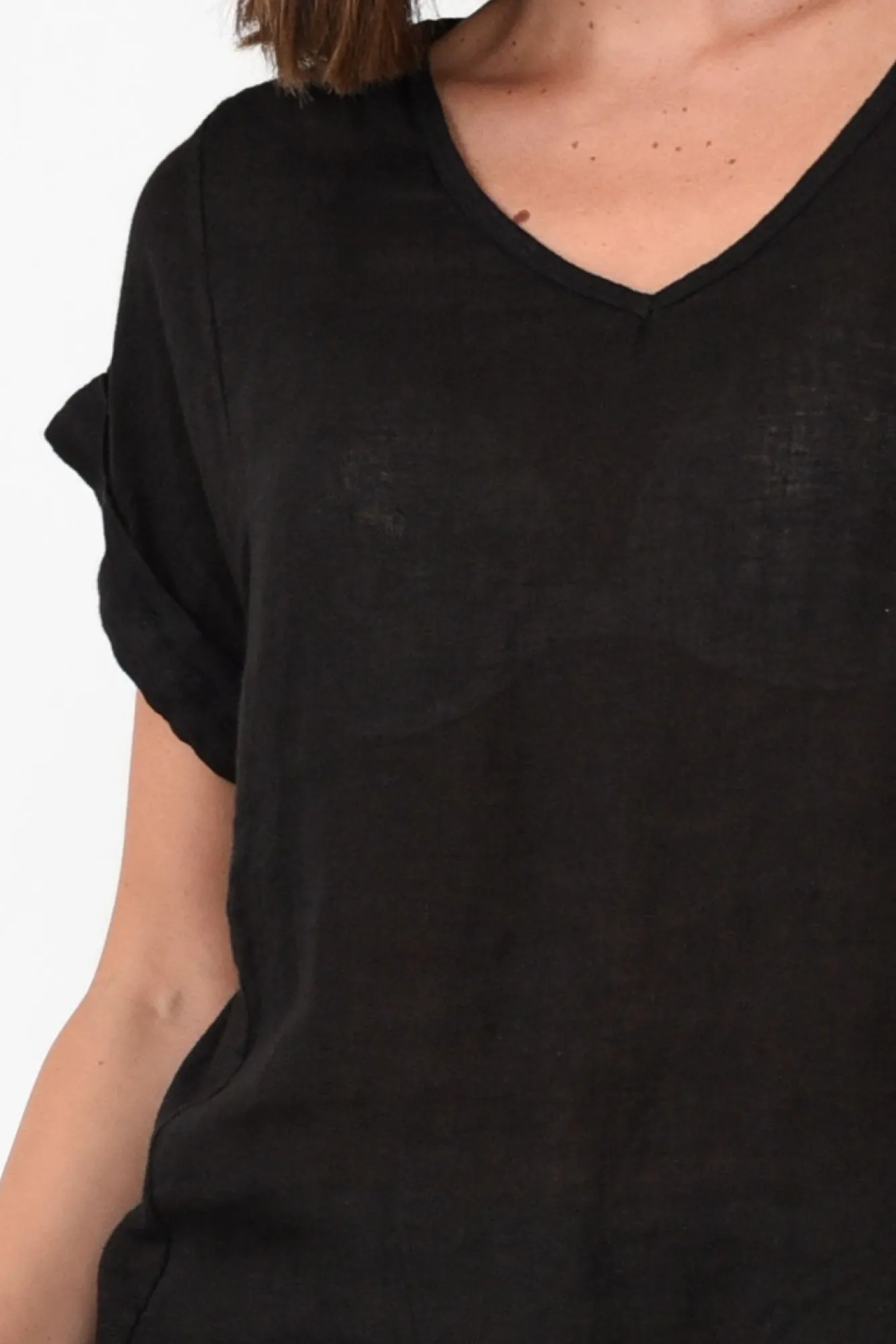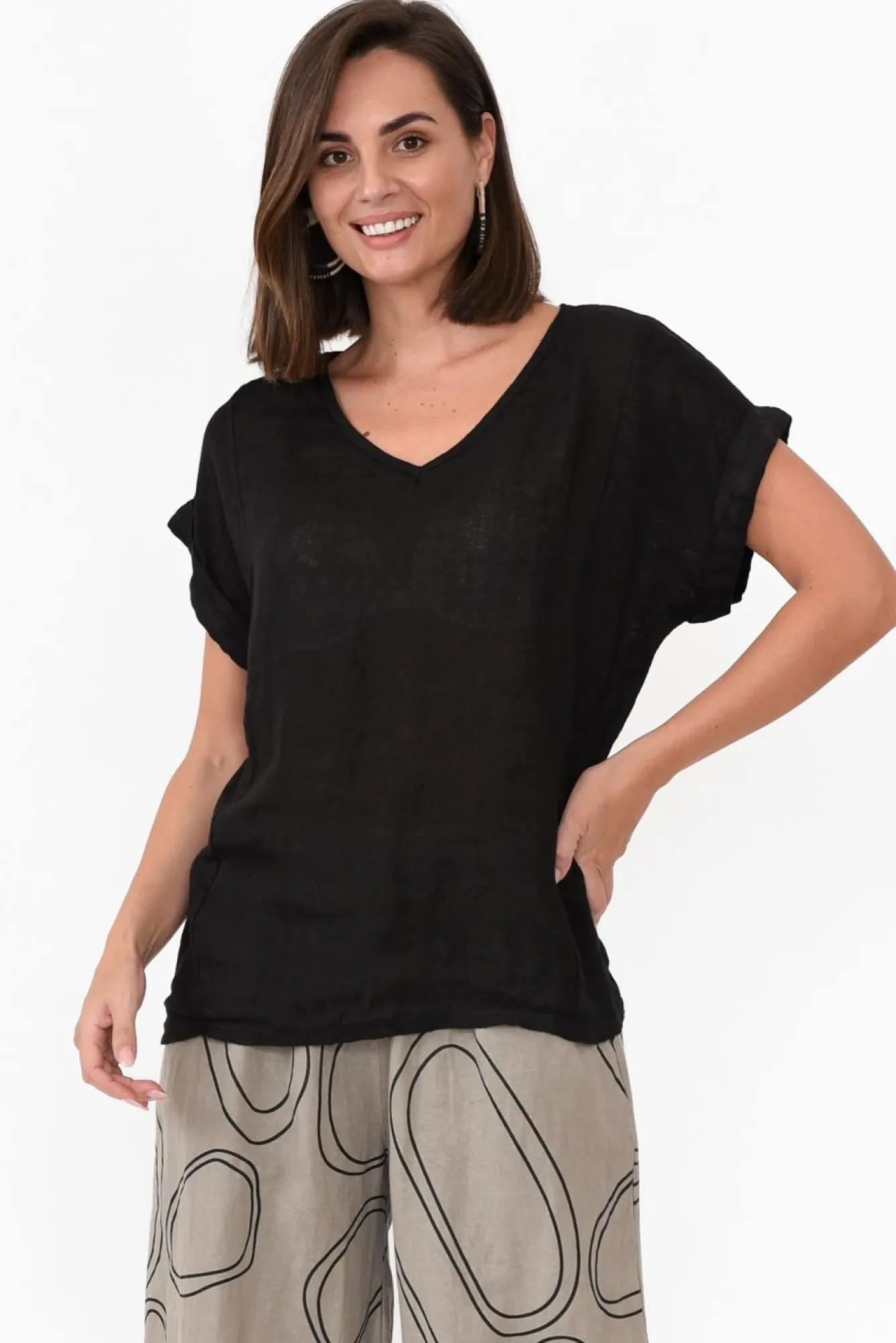 Linen Tops<Talia Benson Anna Black Linen Tee