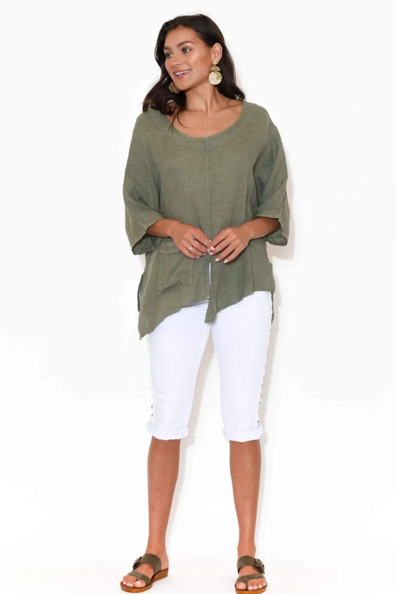 Linen Tops<Talia Benson Kara Khaki Linen Top