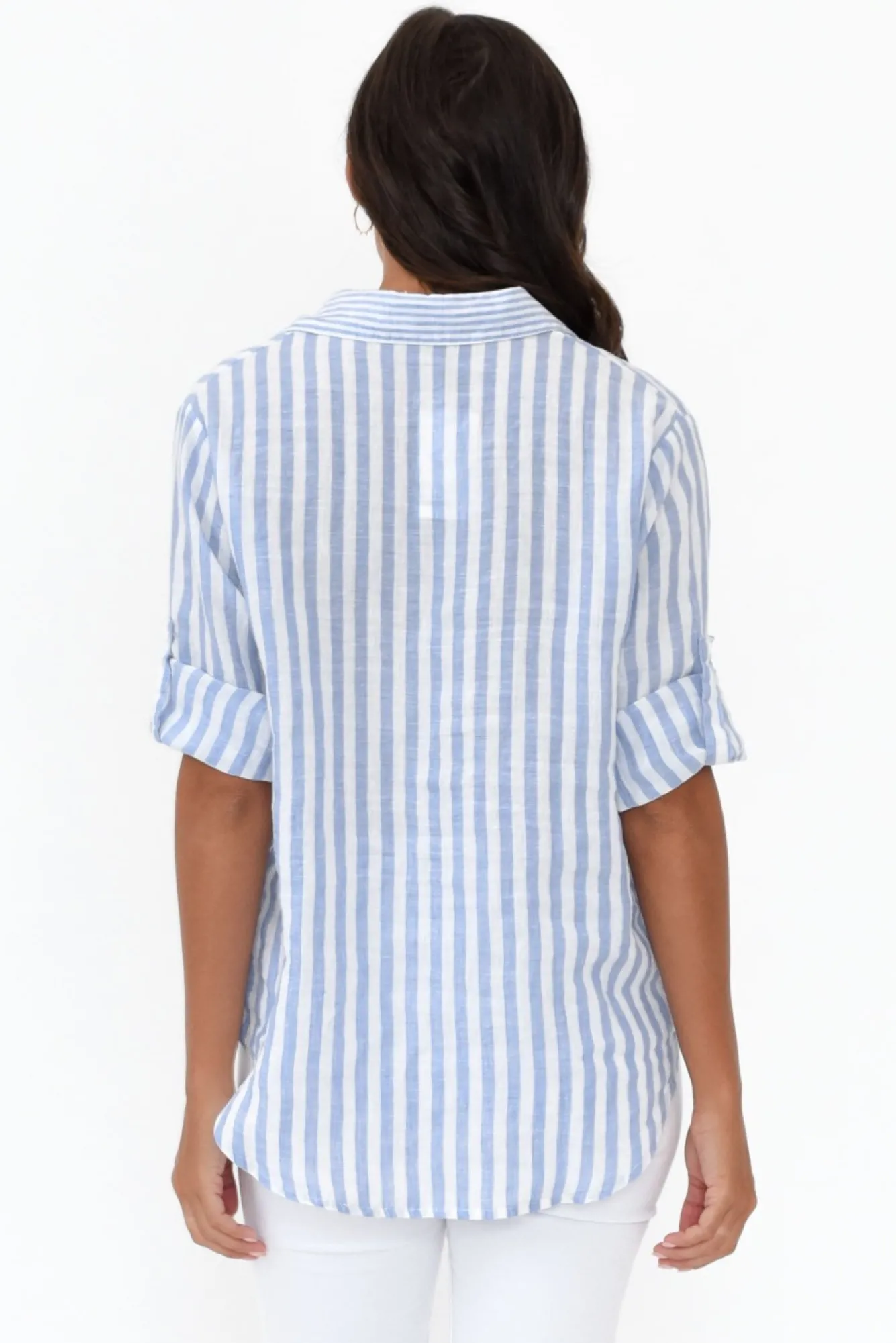 Be the first to review “Linen Tops<Worthier Hyatt Blue Stripe Linen Shirt” Cancel reply