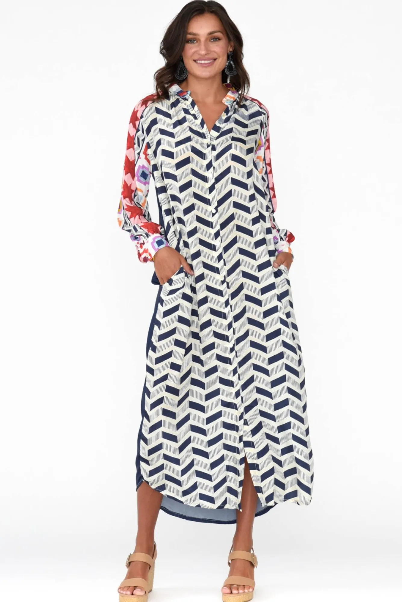 Maxi Dresses<Italian Star Maeva Navy Geometric Shirt Dress