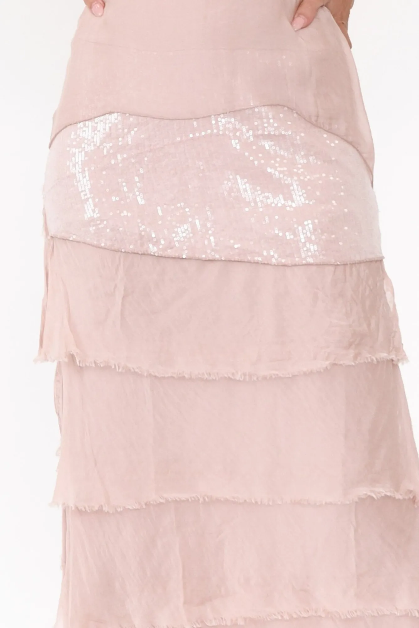 Fit: True. Refer To Size & Fit Tab Below For Specific Size RecommendationNNfabric: Outer: 70% Viscose 30% Silk Lining: 95% Viscose 5% ElastaneNNsoft, Stretchy Comfortable Lining And Sheer, Lightweight Non-Stretch OuterNrounded Neckline Complimented By Short, Sheer SleevesNtiered From Waist DownNmaxi Length Singlet Shaped, Comfortable And Stretchy Inner LiningNeye-Catching Sequined Tier For Added SparkleNhip Length, Sheer Flowing Silk OverlayNmaxi LengthNNcare: Cool Gentle Hand Wash RecommendedNNcolour: Pink Blush