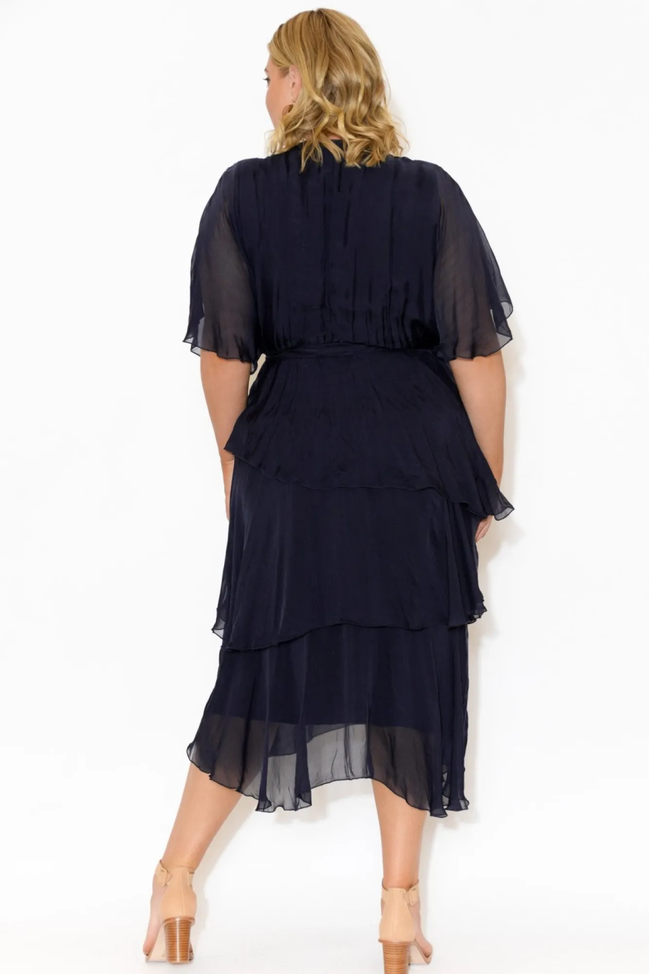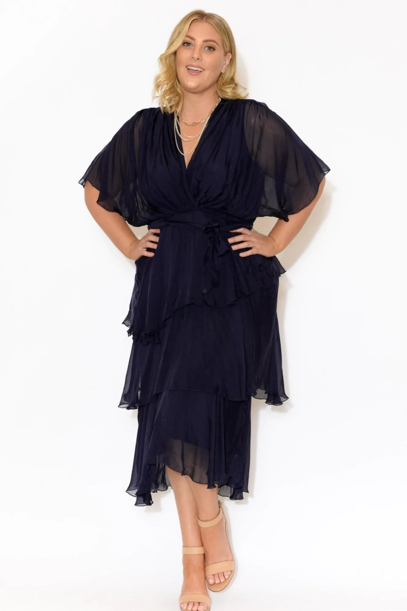 Be the first to review “Midi Dresses<La Strada Natalie Navy Silk Layer Dress” Cancel reply