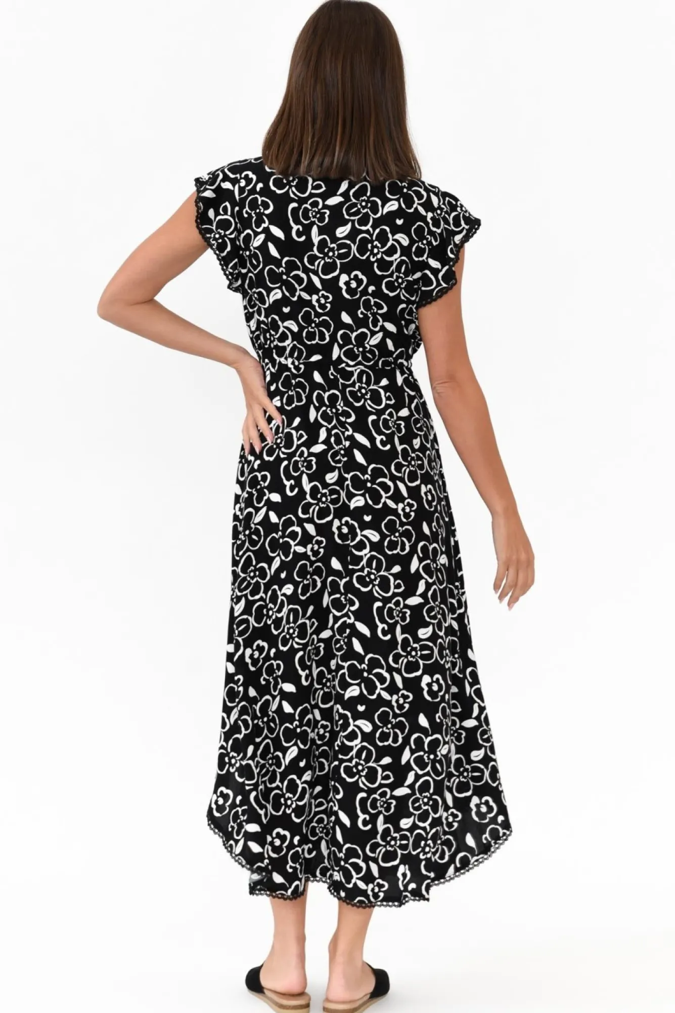 Midi Dresses<New U Collection Libby Black Flower Midi Dress
