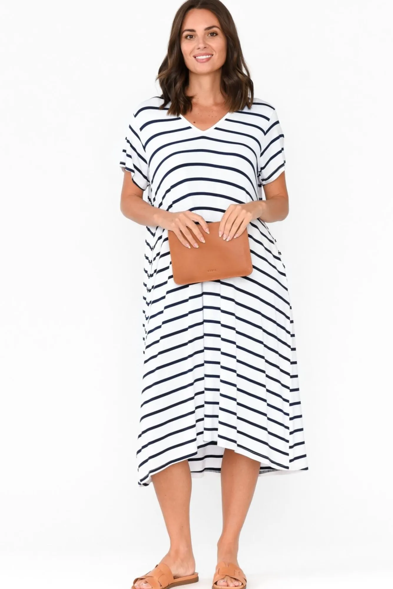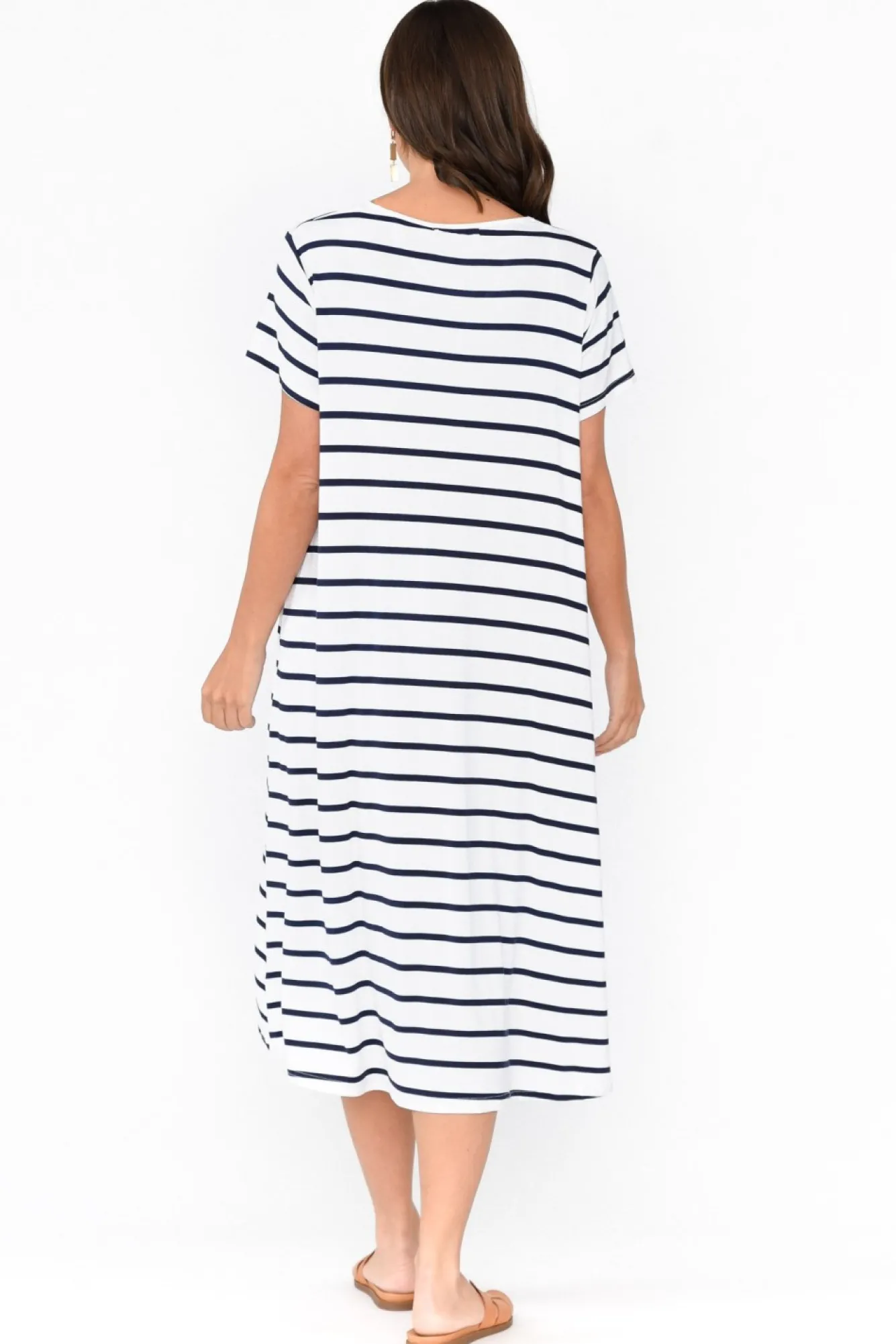Above Knee Dresses<One Ten Willow Mandy Navy Pinstripe Cotton Tee Dress