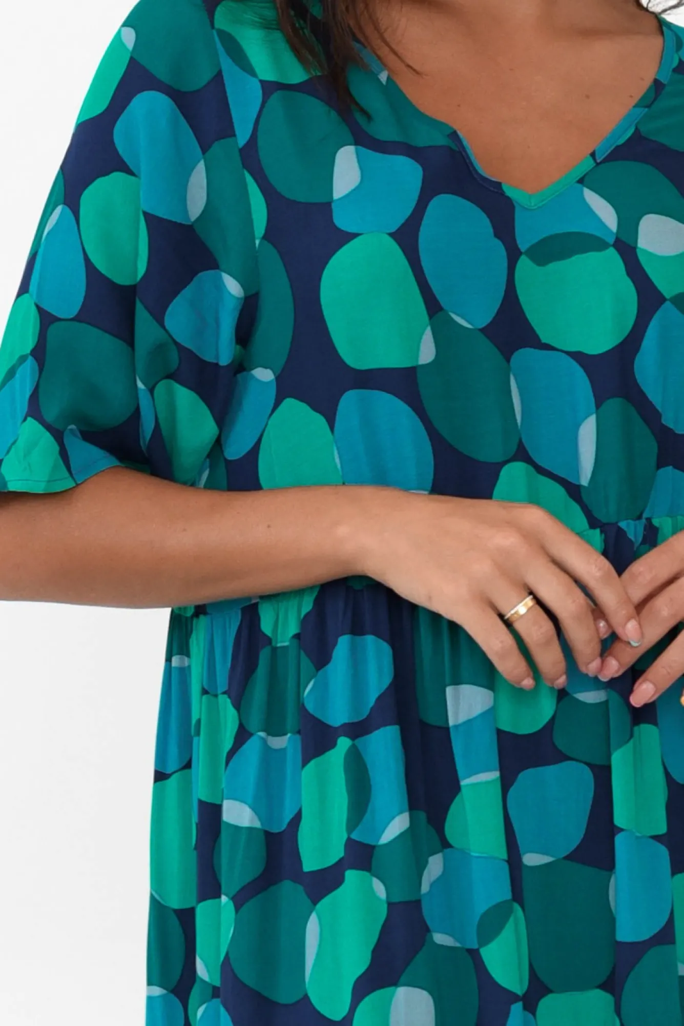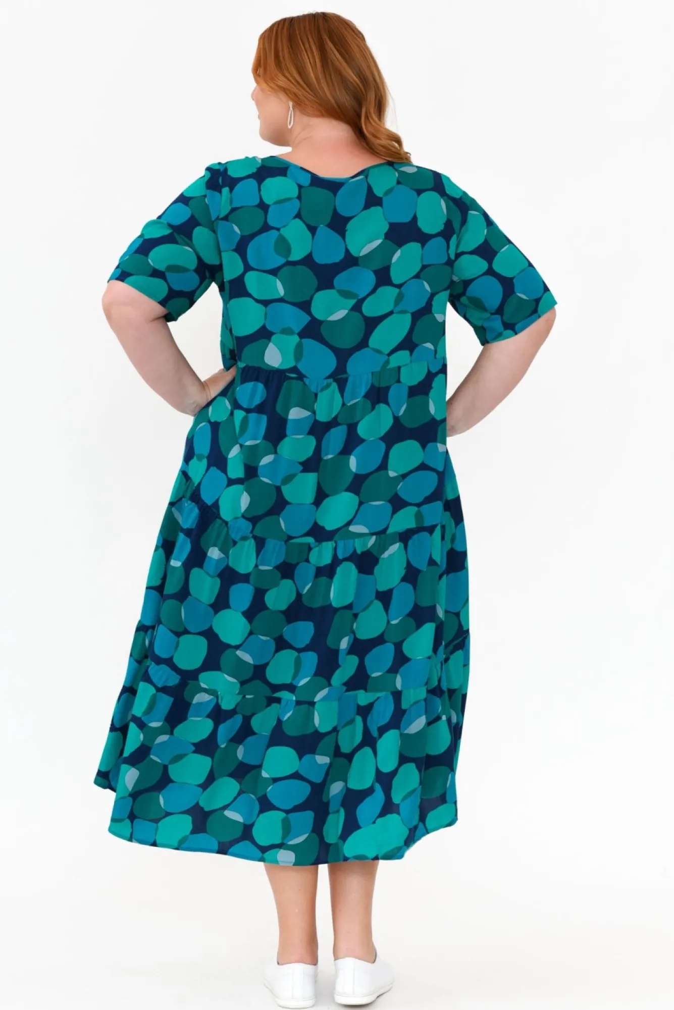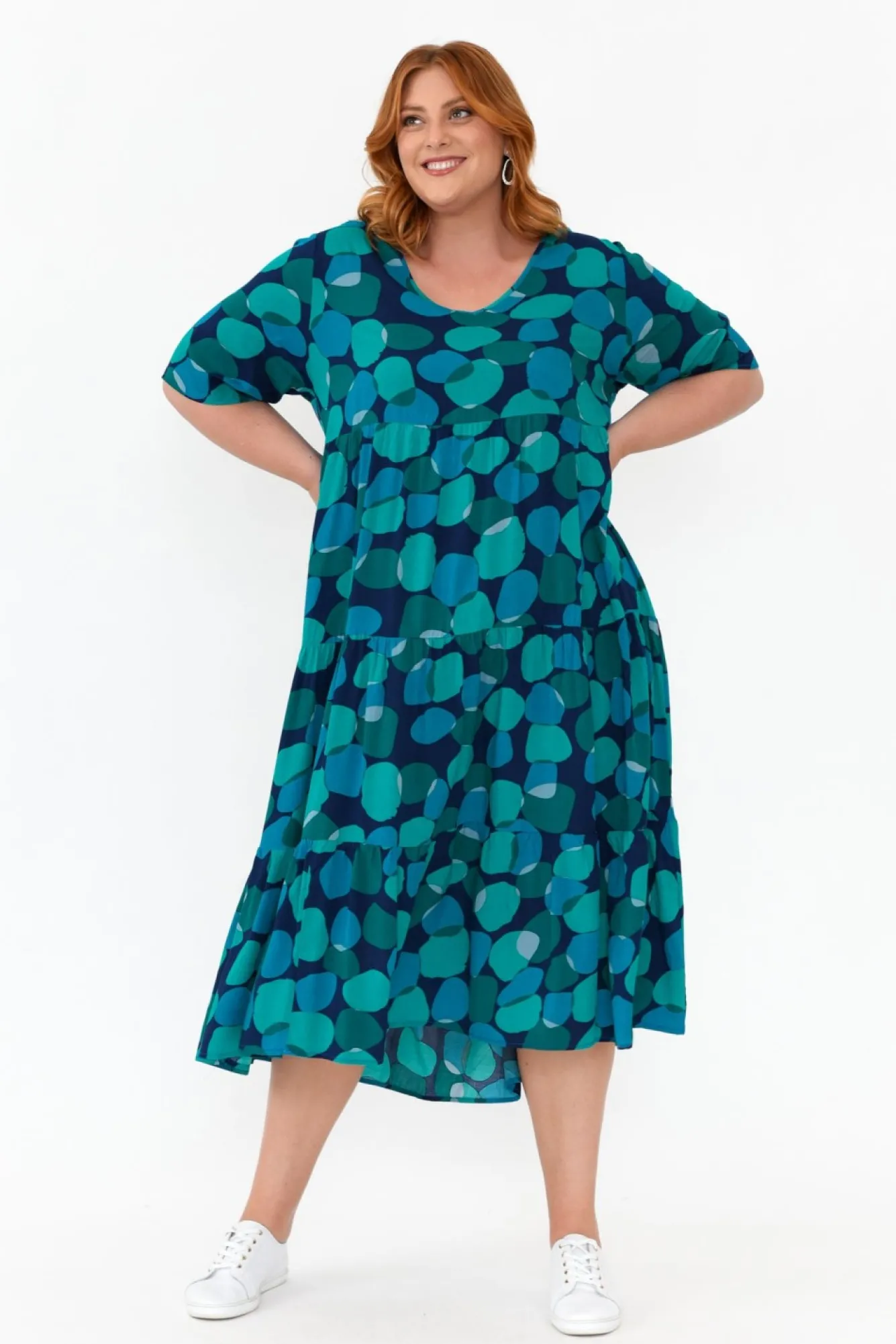 Fit: True. Refer To Size & Fit Tab Below For Specific Size RecommendationNNfabric: 100% RayonNultra-Lightweight, Soft And Non-Stretch Rayon Nrounded V-NeckNflattering Short Sleeves NNfour Flowy Tiers Create A Sophisticated Feminine LookNrelaxed A-Line ShapeNmaxi LengthNNcare: Cool Gentle Hand Wash RecommendedNNcolour: Navy With A Modern Turquoise Spot Overlay