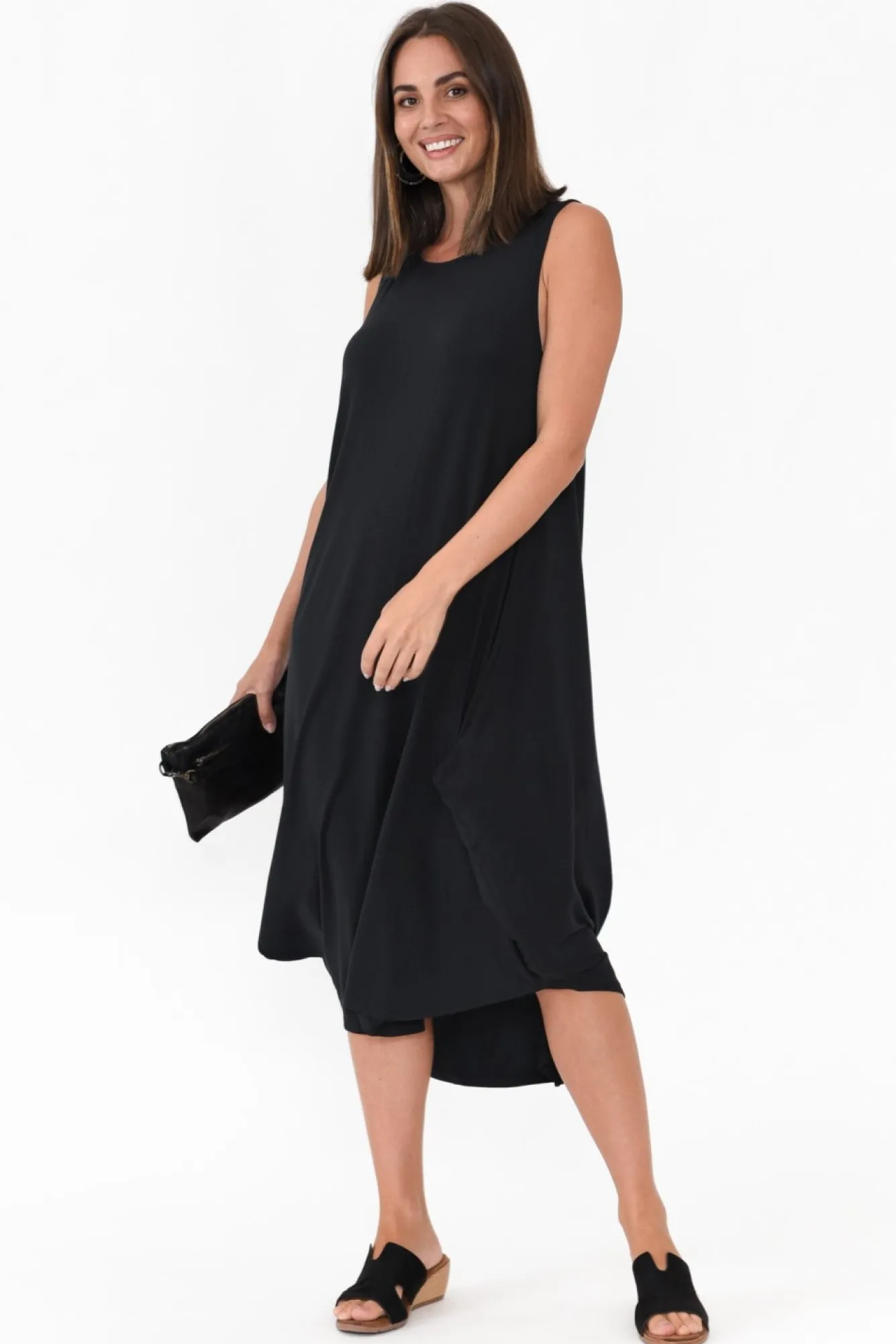Be the first to review “Midi Dresses<Tani Black Micro Modal Sleeveless Tri Drape Dress” Cancel reply