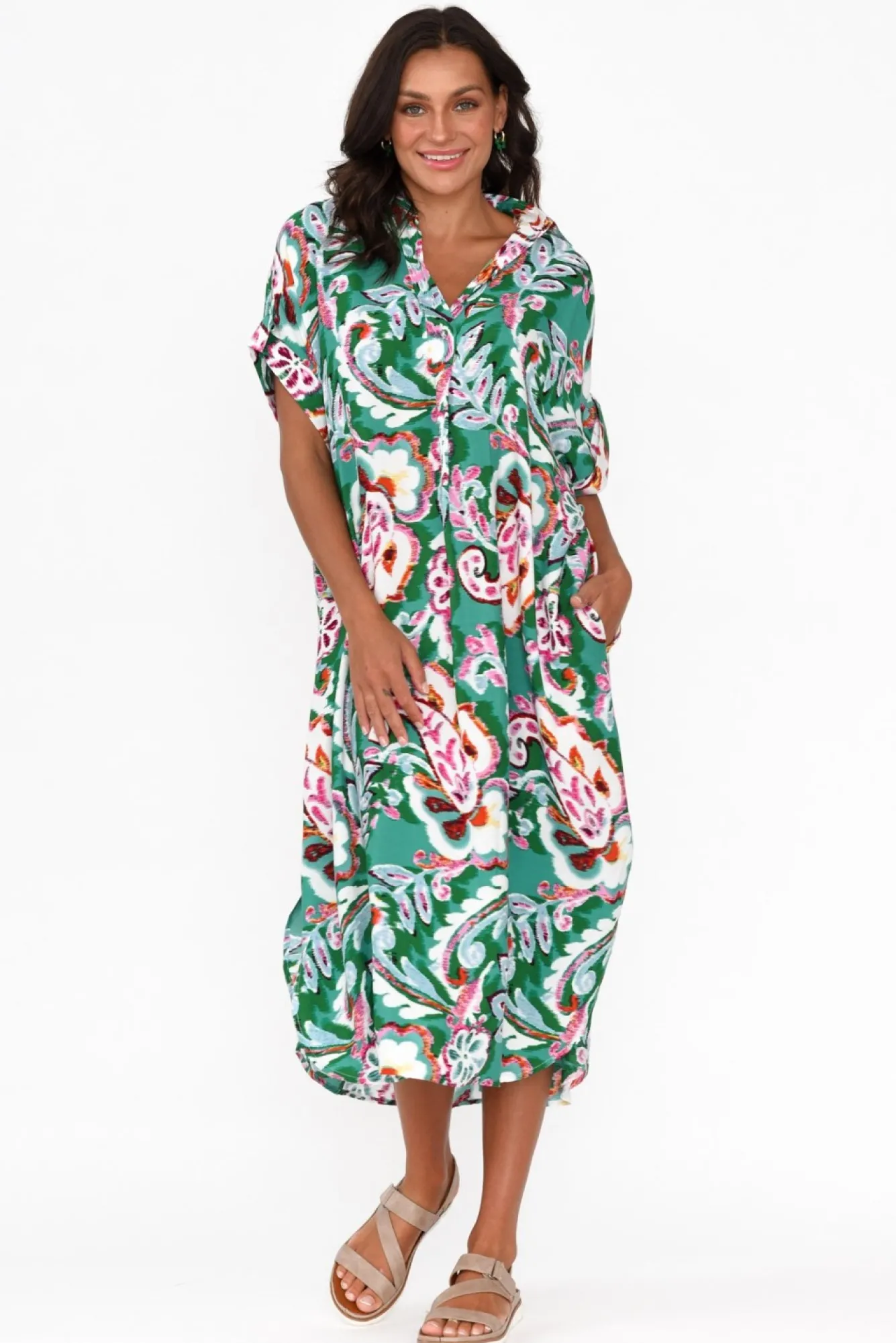Midi Dresses<Willow Tree Aletta Green Garden Collared Dress