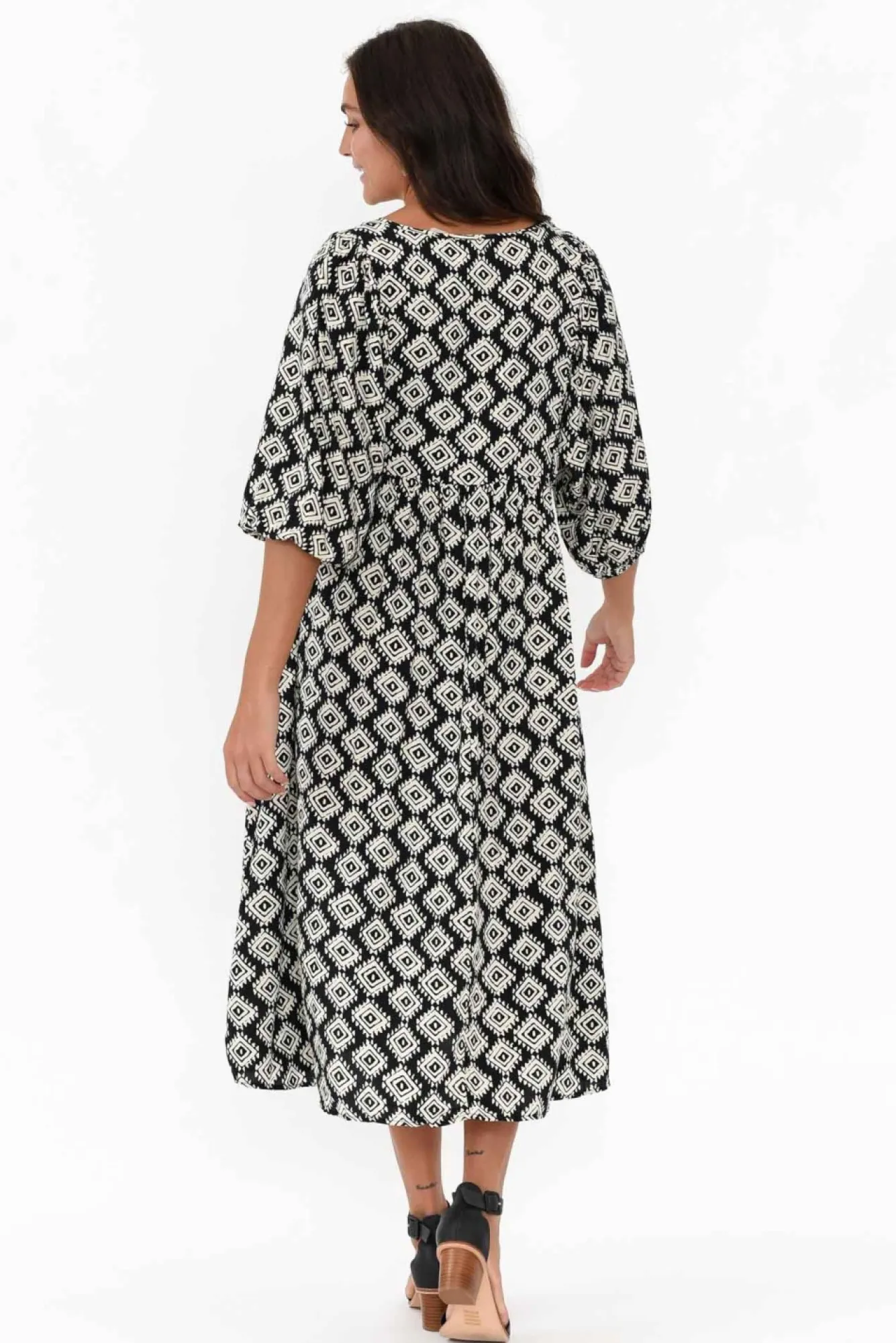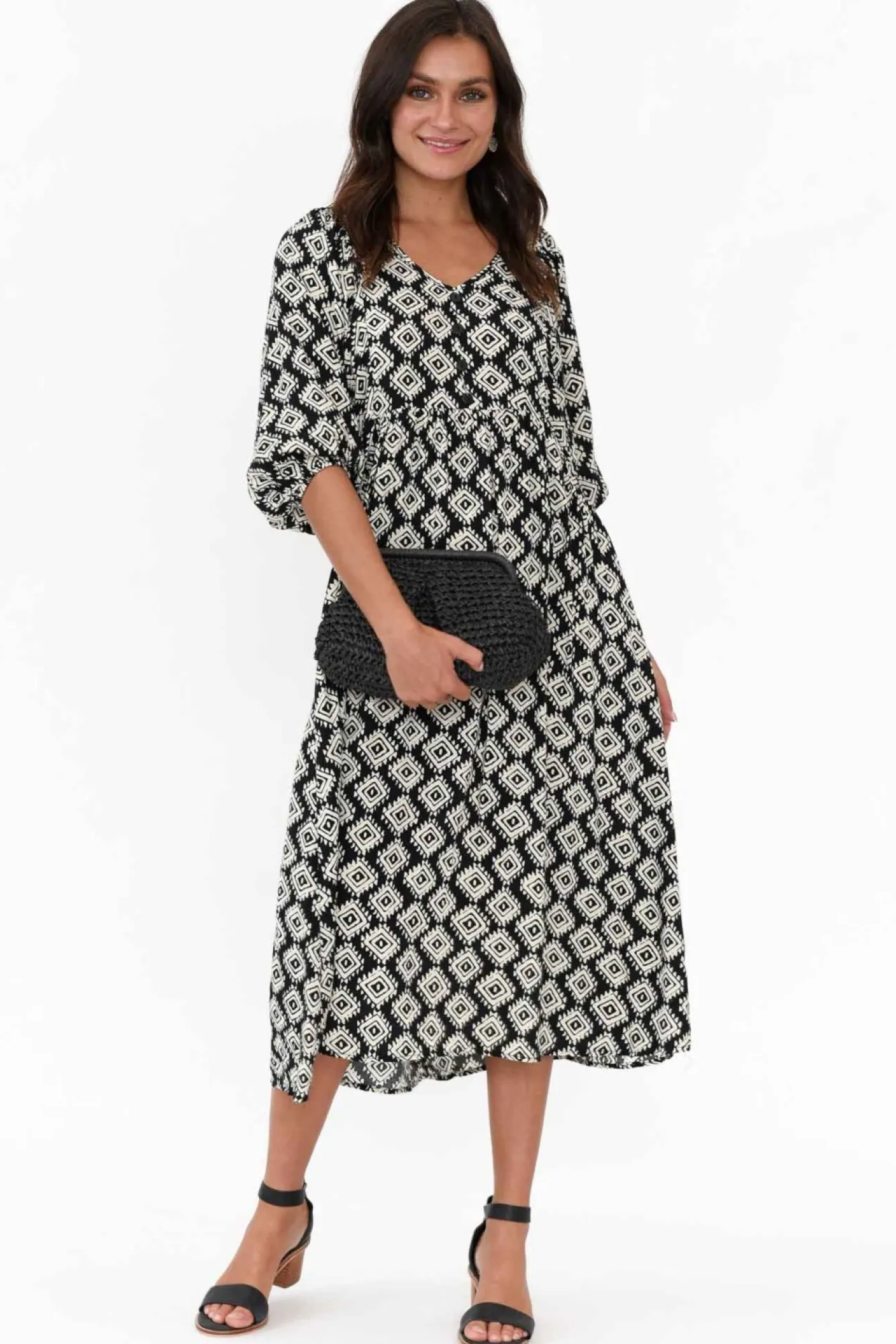 Midi Dresses<Willow Tree Trey Black Geo Midi Dress