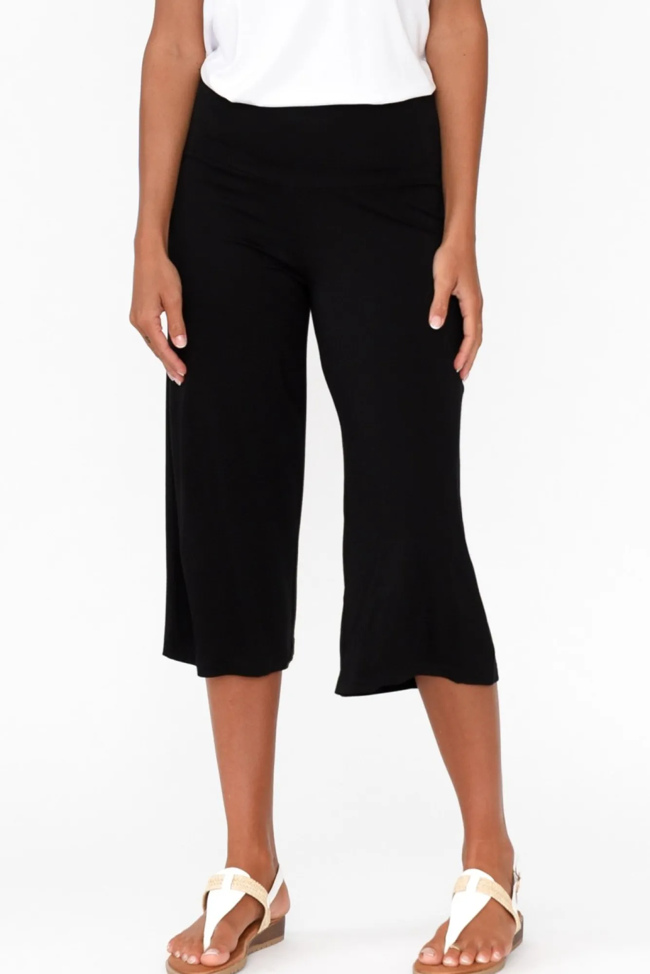 Fit: True. Refer To Size & Fit Tab Below For Specific Size RecommendationNNfabric: 93% Bamboo Viscose, 7% ViscoseNlightweight Bamboo Style With Super Soft Stretch And Breathability FeaturesNblack Bamboo Is Upf50 Making This Style Perfect For Sunny DaysNwide, Flat And Stretchy WaistbandNwide Leg, Flaring Slightly At The KneeNcropped Culottes LengthNNcare: Cool Gentle Machine Wash RecommendedNNcolour: Versatile Black