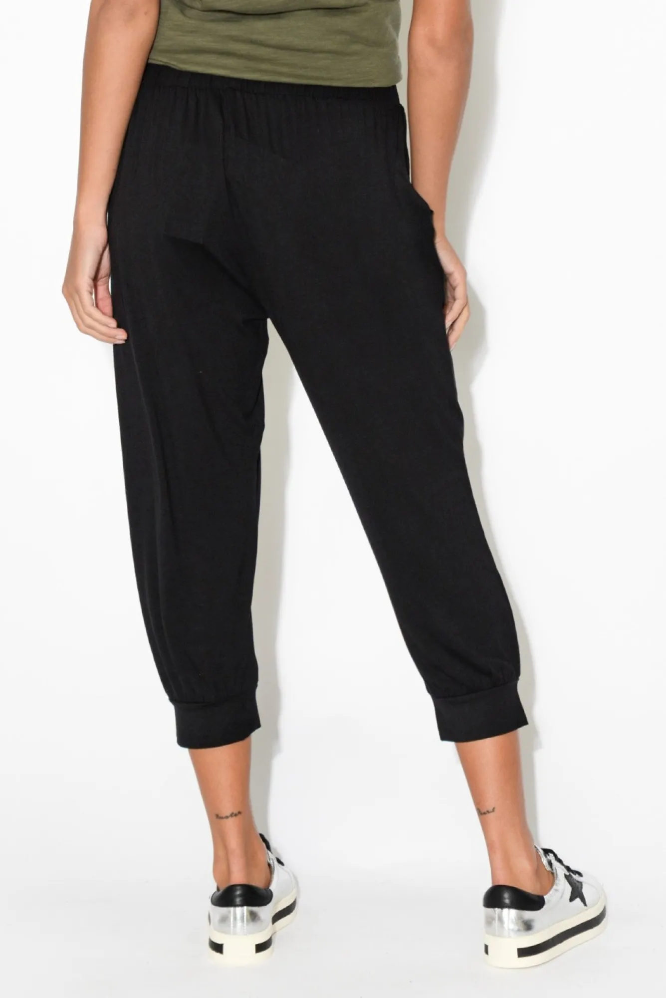 Fit: True To Size. Refer To Size & Fit Tab Below For Specific Size RecommendationNNfabric: Viscose/ElastaneNa Lightweight, Ultra-Soft And Stretchy Fabric In A Relaxed CutNdesigned With A Flat, Gathered Elastic Waistband Providing Comfortable StretchNNfeatures Two Generous Hip PocketsNNrelaxed, Slouch Fit In A Cropped LengthNsoft And Stretchy Tapered CuffsNNNcare: Cool Gentle Hand Wash RecommendedNNcolour: Versatile Black Shade