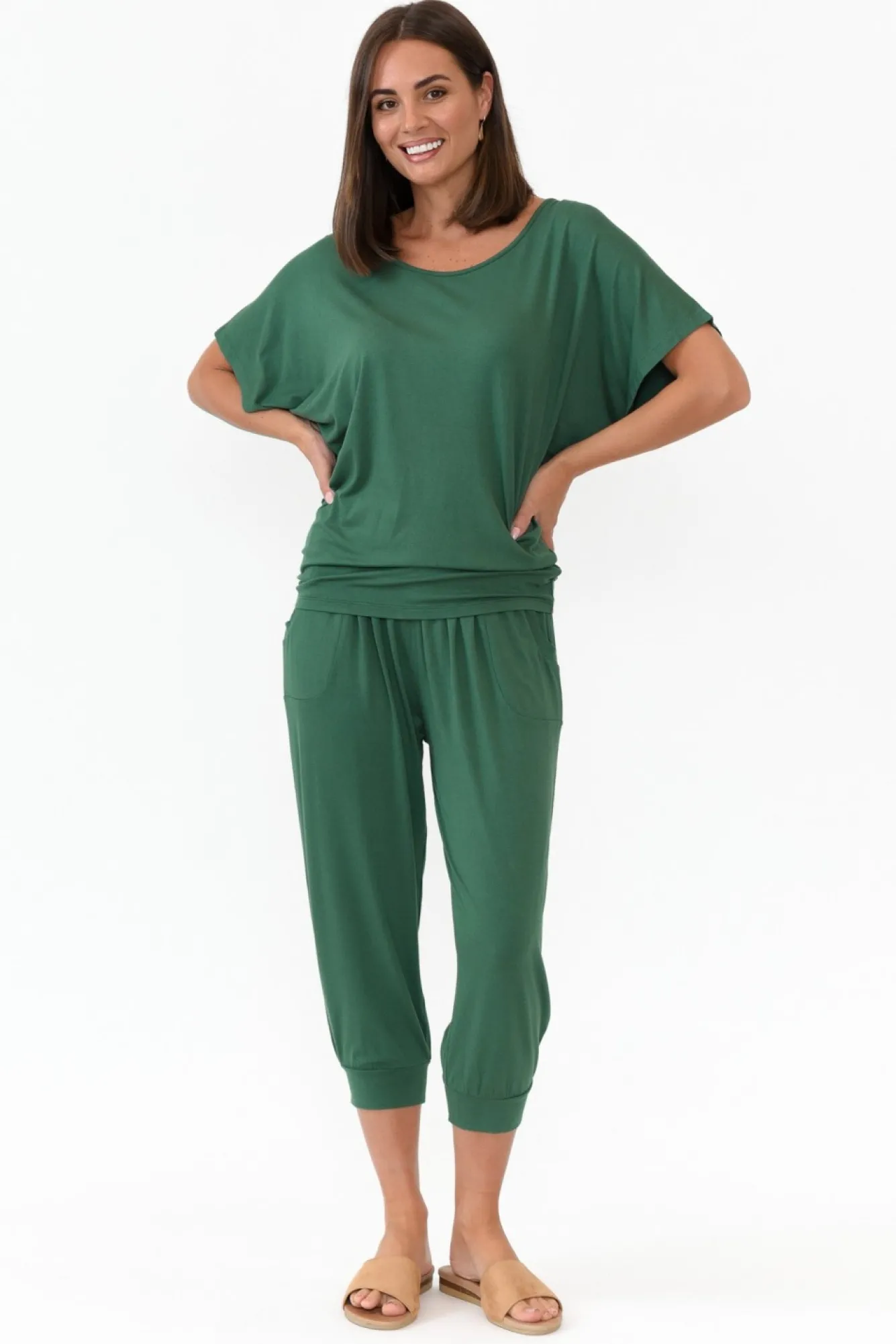Fit: True To Size. Refer To Size & Fit Tab Below For Specific Size RecommendationNNfabric: Viscose/ElastaneNultra-Softa And Stretchy Fabric With A Lightweight Hand Feel NNcomfort Enhancing Elasticated Waistband With Soft Gather Detailing NNtwo Generous Hip PocketsNNversatile Slouchy Design NNcropped Length With Soft And Stretchy Tapered CuffsNNcare: Cool Gentle Hand Wash RecommendedNNcolour: Deep Emerald Hue