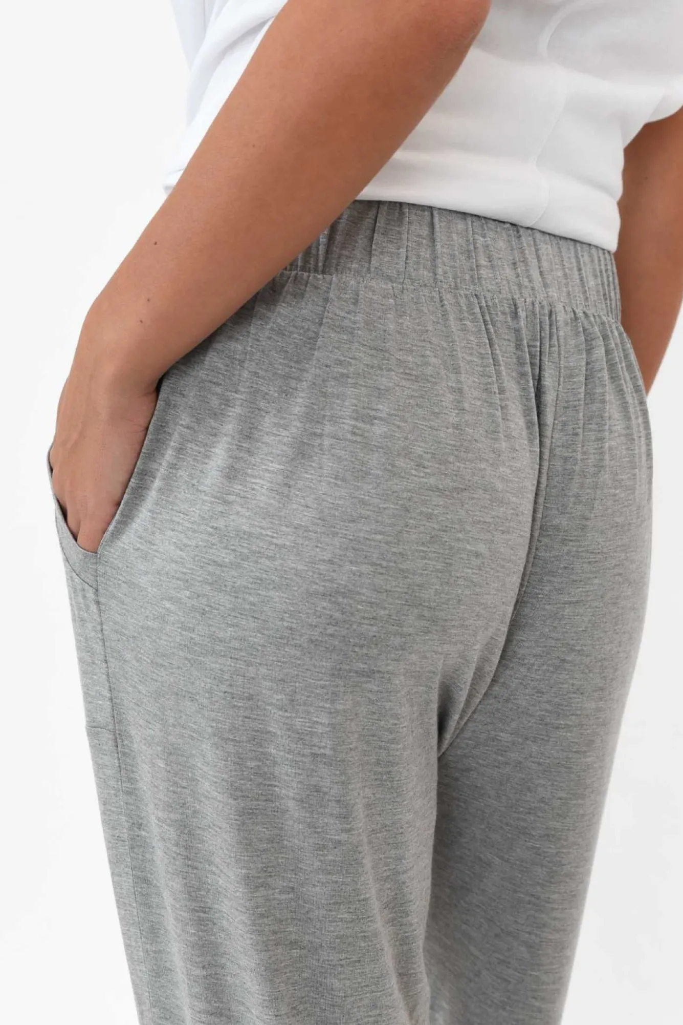 Fit: True To Size. Refer To Size & Fit Tab Below For Specific Size RecommendationNNfabric: Viscose/ElastaneNa Lightweight, Ultra-Soft And Stretchy Fabric In A Relaxed CutNdesigned With A Flat, Gathered Elastic Waistband Providing Comfortable StretchNNtwo Generous Hip PocketsNNrelaxed, Slouch FitNcropped Length With Soft And Stretchy Tapered CuffsNNcare: Cool Gentle Hand Wash RecommendedNNcolour: Classic Grey Marle