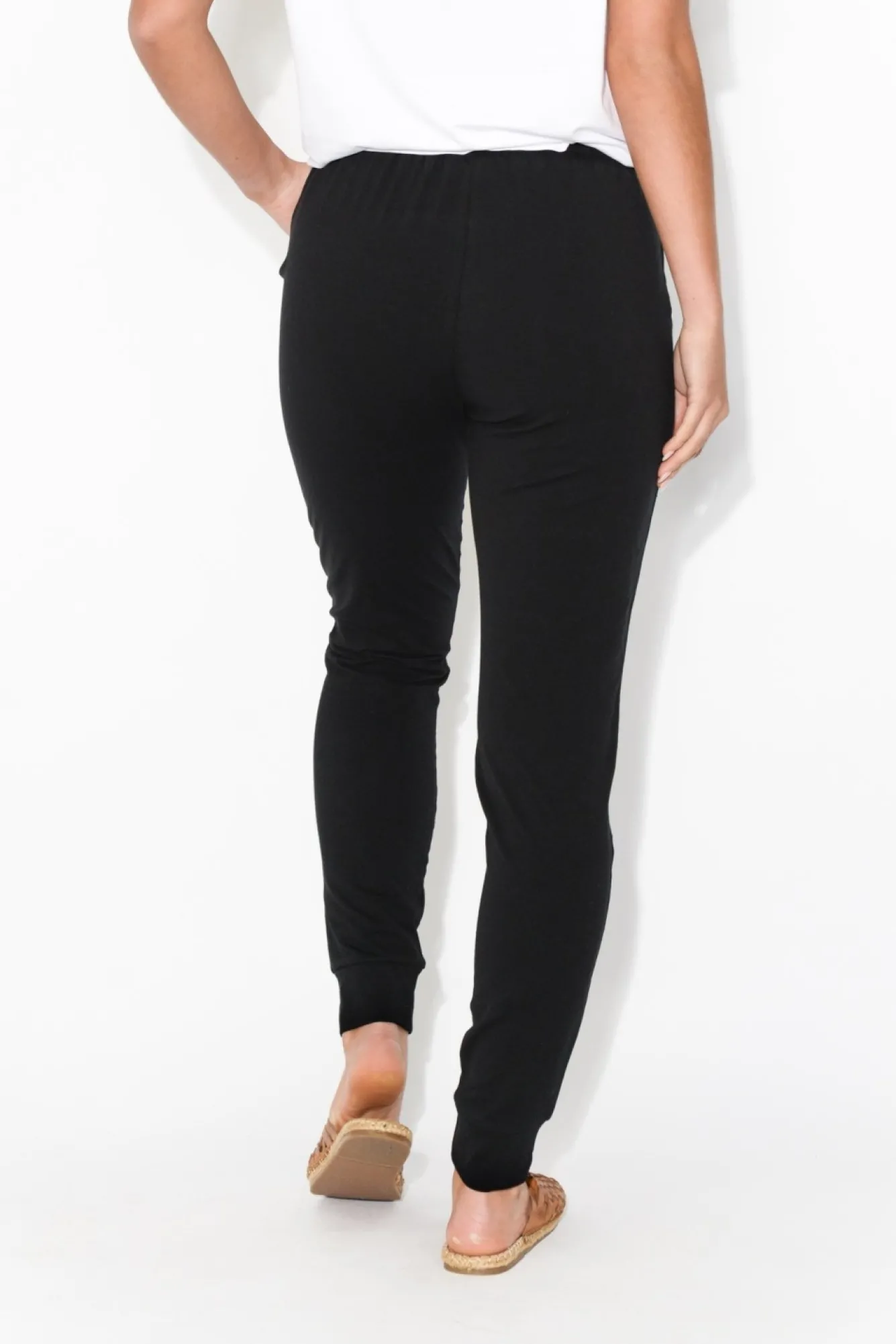 Fit: True To Size. Refer To Size & Fit Tab Below For Specific Size RecommendationNNfabric: Cotton/ElastaneNa Comfortable, Lightweight Pant With Soft, Stretch Cotton FabricNclassic Jogger Pant With Elasticised Waistband And Black Drawstring Tie For AdjustabilityNwear Mid-Rise For An Ultra-Flattering SilhouetteNNtwo Generous Pockets At The HipNfull Length DesignNNstretchy Tapered CuffsNNcare: Cool Gentle Machine Wash RecommendedNNcolour: Staple Black ShadeNNnote: Measurements Vary Between Colours. Please Refer To Individual Product Measurements To Find Your Perfect Fit.