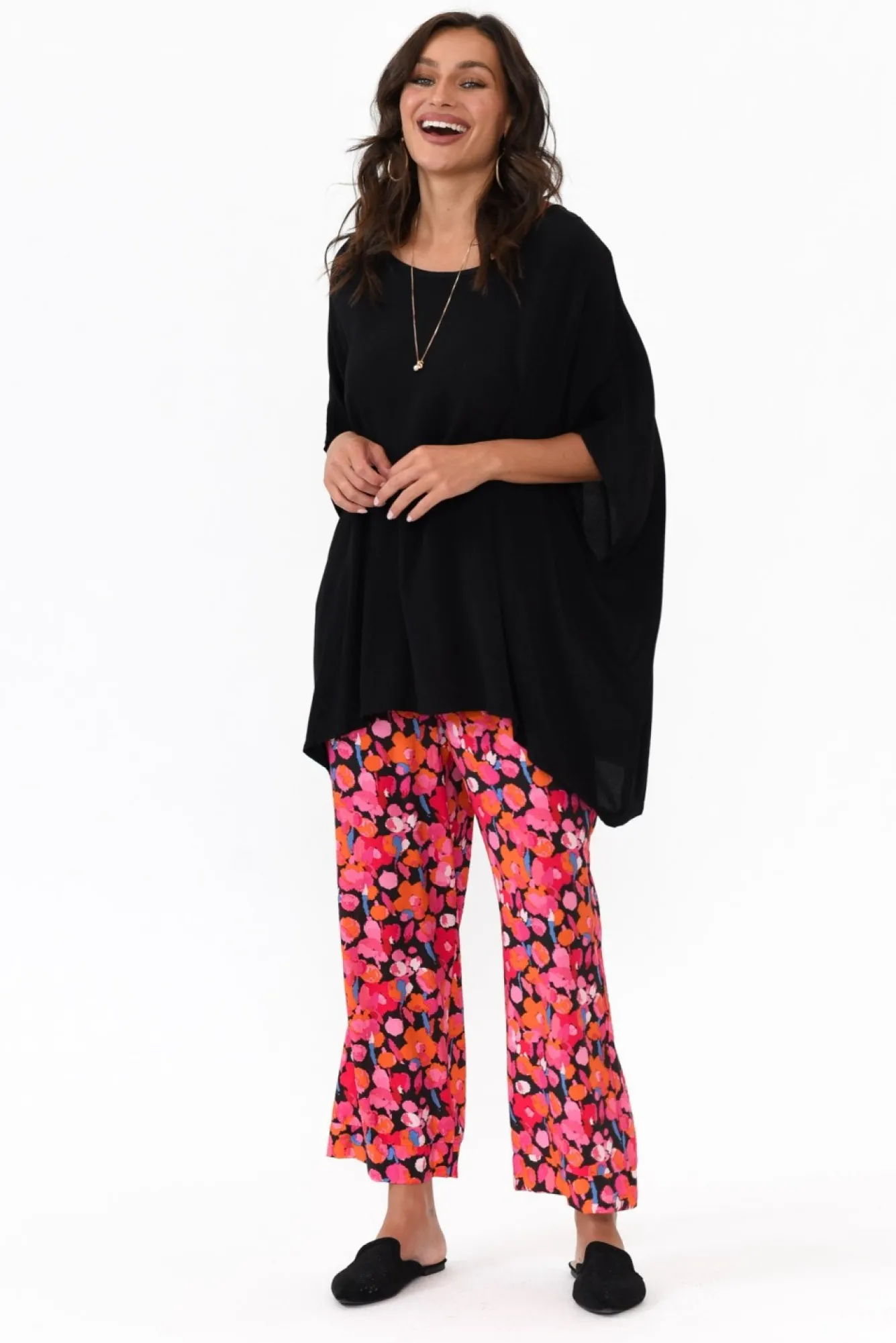 Fit: True To Size. Refer To Size & Fit Tab Below For Specific Size RecommendationNNfabric: Viscose/NylonNlightweight And Non-Stretch Fabric With A Lovely Textured Hand FeelNwide Waistband Sits Above The Belly Button With An Elastic Stretch At The BackNNchic Wide Leg Silhouette Flatters The LegsNtwo Discreet Hip Pockets For FunctionalityNcropped Length Falls Above The AnkleNNcare: Cool Gentle Machine Wash RecommendedNNcolour: Black Base With An Orange And Pink Floral Overlay