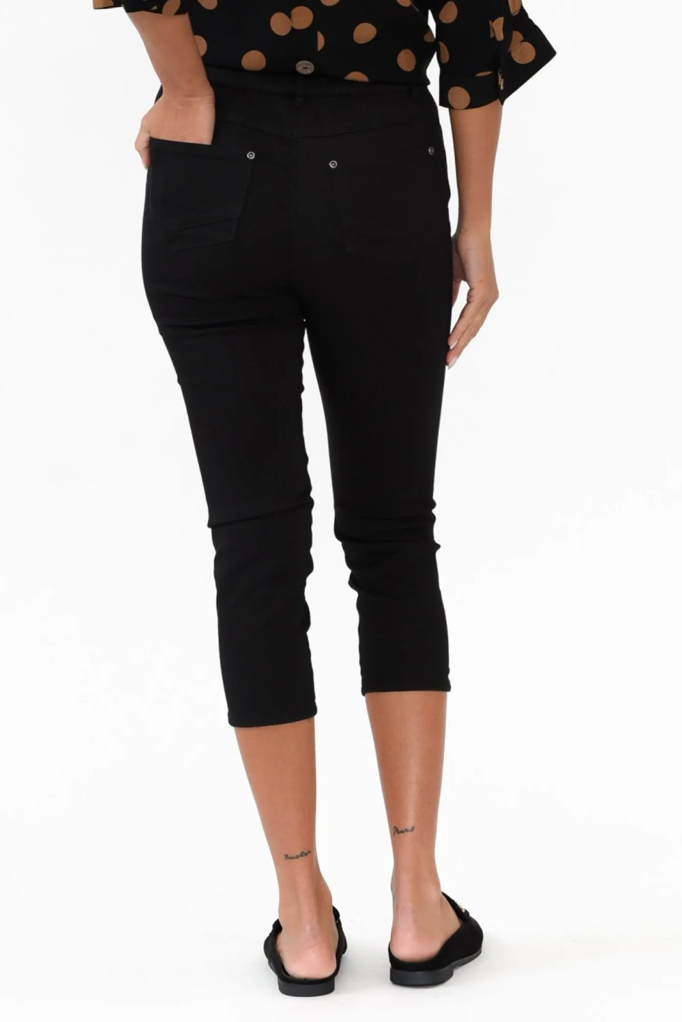 Fit: Oversized. Refer To Size & Fit Tab Below For Specific Size RecommendationNNfabric: 97% Cotton, 3% SpandexNmidweight, Breathable And Slightly Stretchy Cotton FabricNcomfortable And Classic Capri Style Pant, The Perfect Staple To Any WardrobeNflattering Mid-Rise Designed To Sit At WaistNfirm-Stretch Elasticated Waistline Offers Additional ComfortN4Cm Belt Loops, Fantastic For Adding Your Favourite BeltNlovely Faux Fly And Front Pocket DetailingNtwo Functional Back PocketsNslim Leg Fit Sits Beautifully At A Cropped Capri LengthNshort Hem Splits On SideNNcare: Cool Gentle Hand Wash RecommendedNNcolour: Classic Black