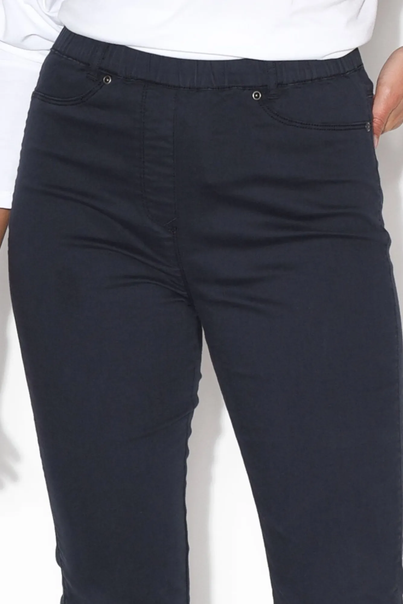 Pants<Cafe Latte Reed Navy Stretch Cotton Capri Pant