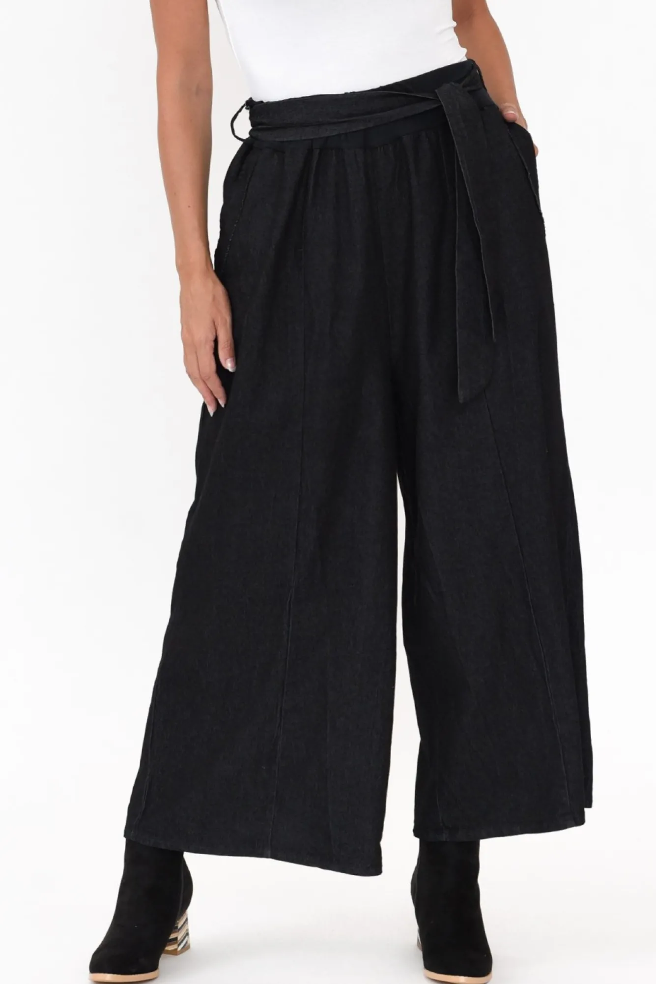 Fit: True To Size. Refer To Size & Fit Tab Below For Specific Size RecommendationNNfabric: 95% Cotton, 5% SpandexNmidweight, Breathable And Non-Stretch Cotton Blend Fabric With A Lovely Denim-Style Finish Nelasticated Waistband Enclosed In A Soft Jersey Band NNremovable Waist Tie With Fixed Belt LoopsNdramatic Wide Leg Silhouette With Feature Centre Seams NNtwo Front Pockets With Exposed Overlock Stitching Detail NNstraight Hemline Reaches Ankle Length NNNcare: Cool Gentle Machine Wash RecommendedNNcolour: Washed Black Denim Shade