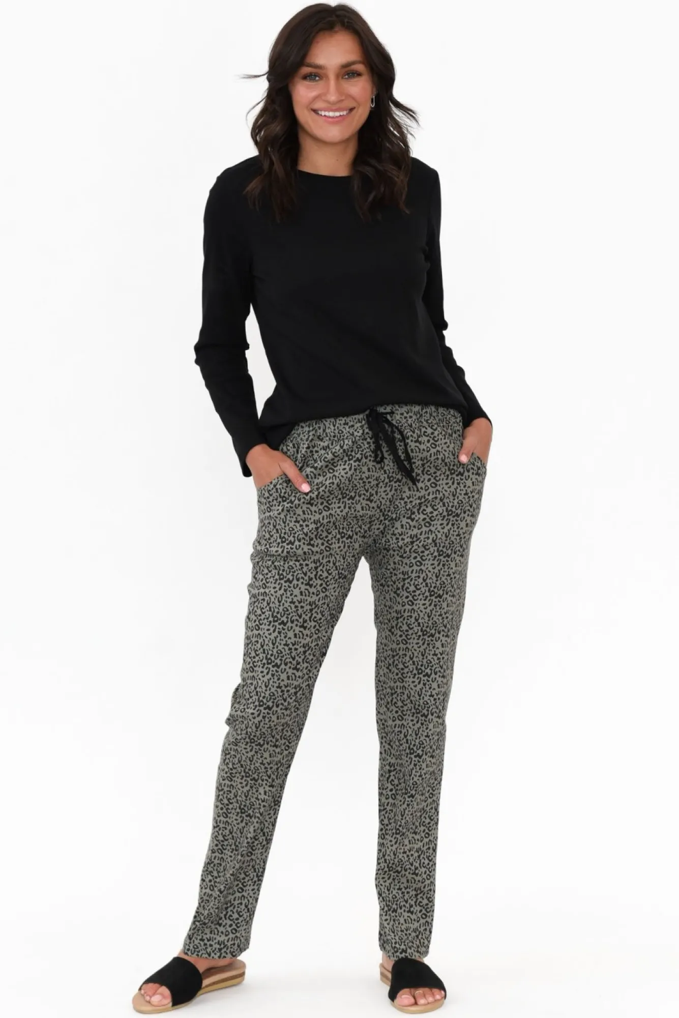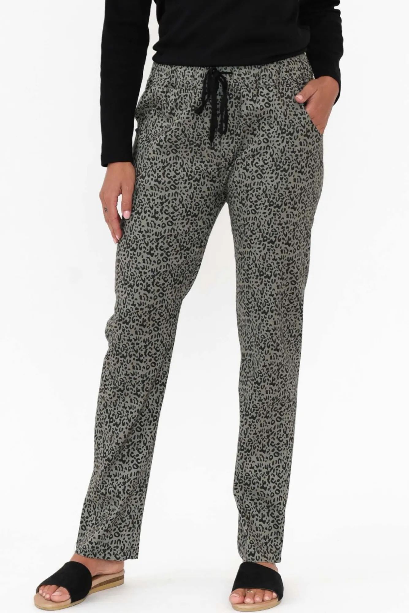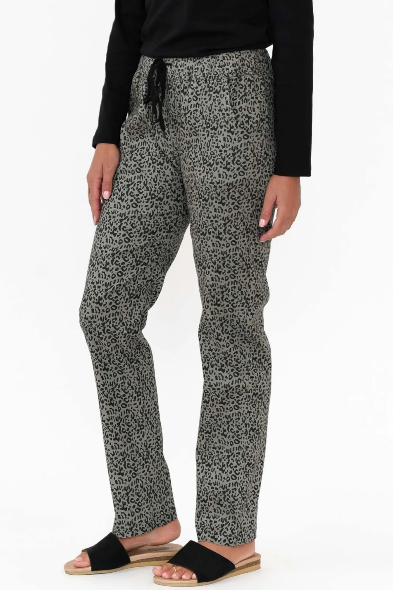 Pants<Cali and Co Kent Khaki Leopard Pant
