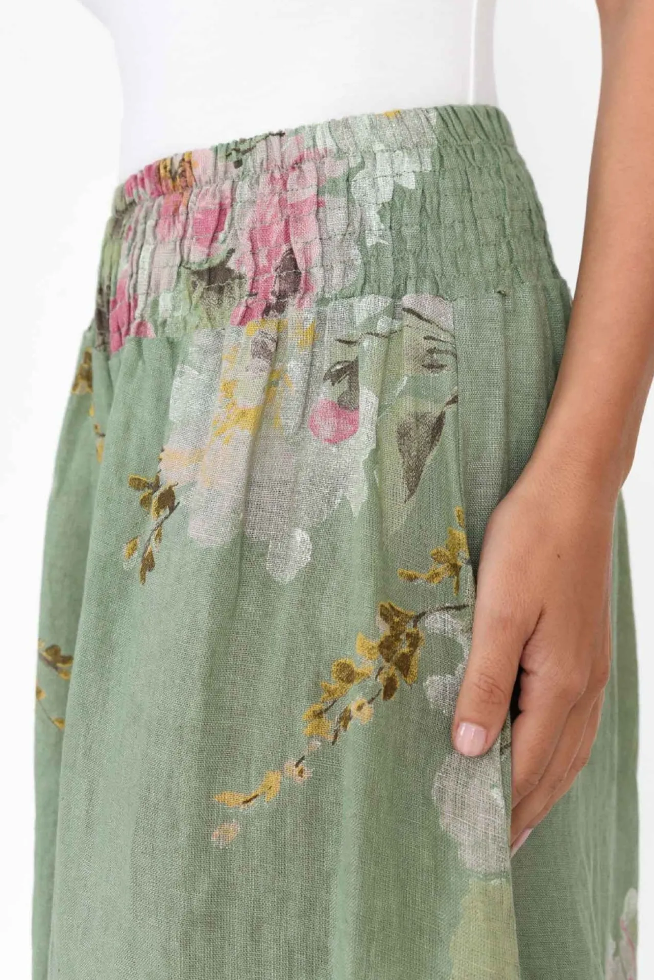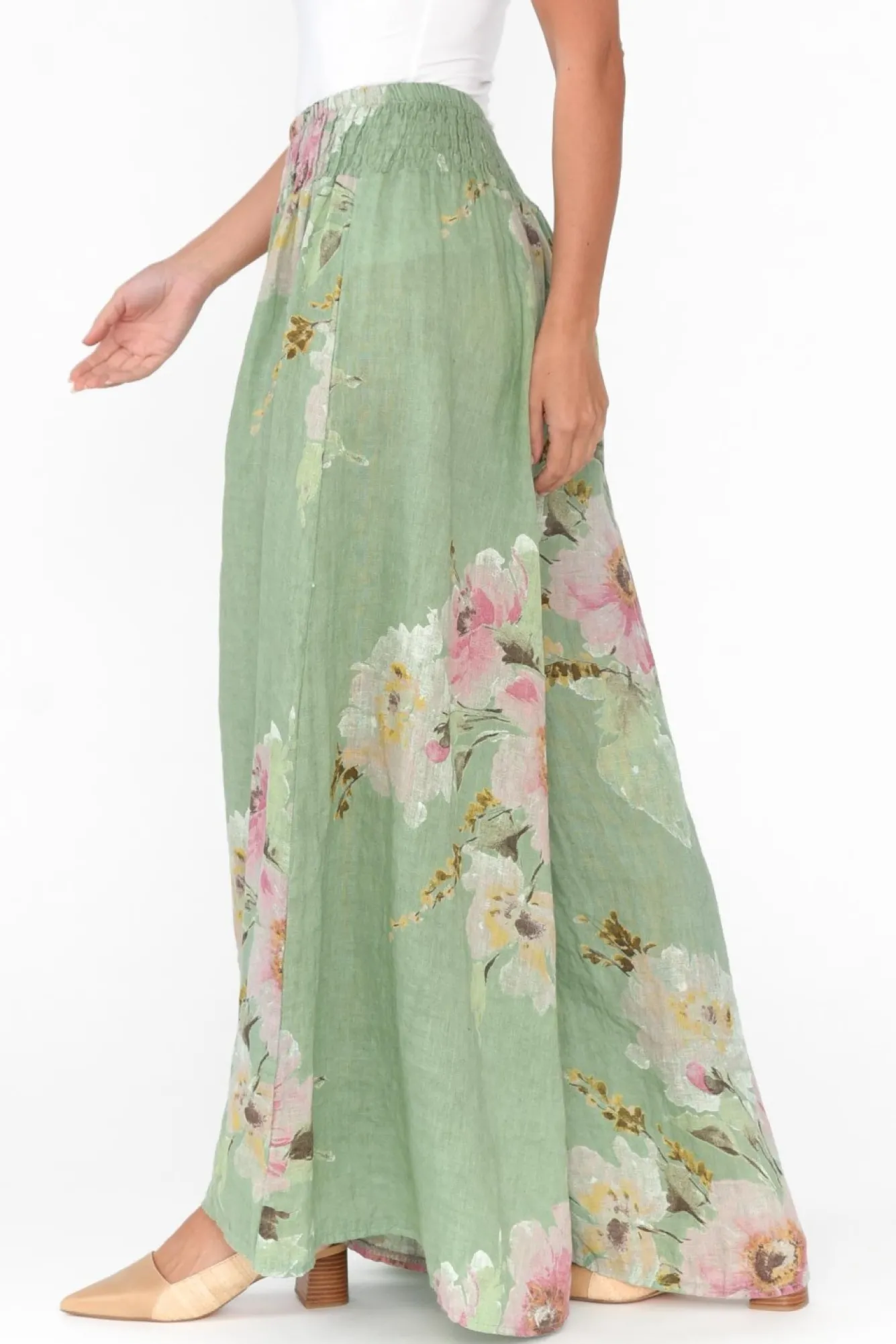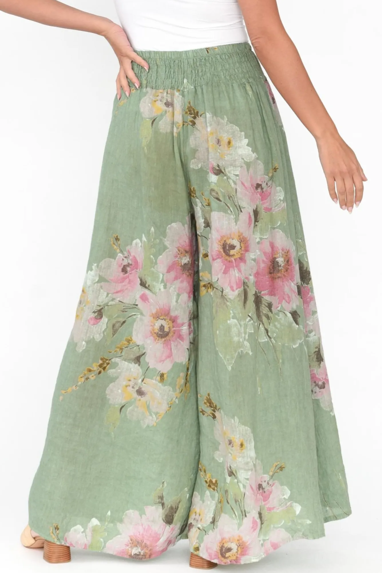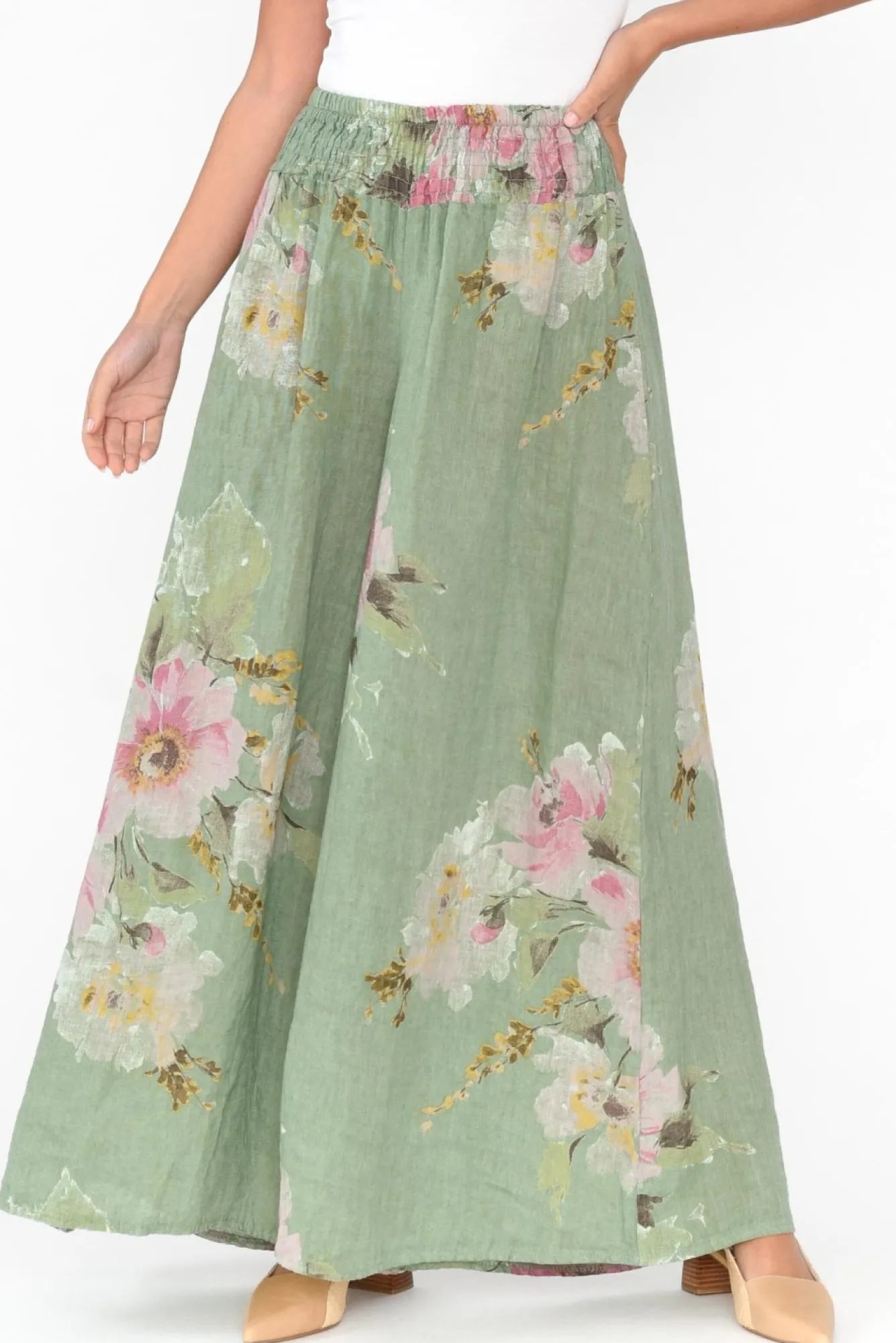 Pants<Donna Donna Rumi Sage Floral Wide Leg Linen Pant