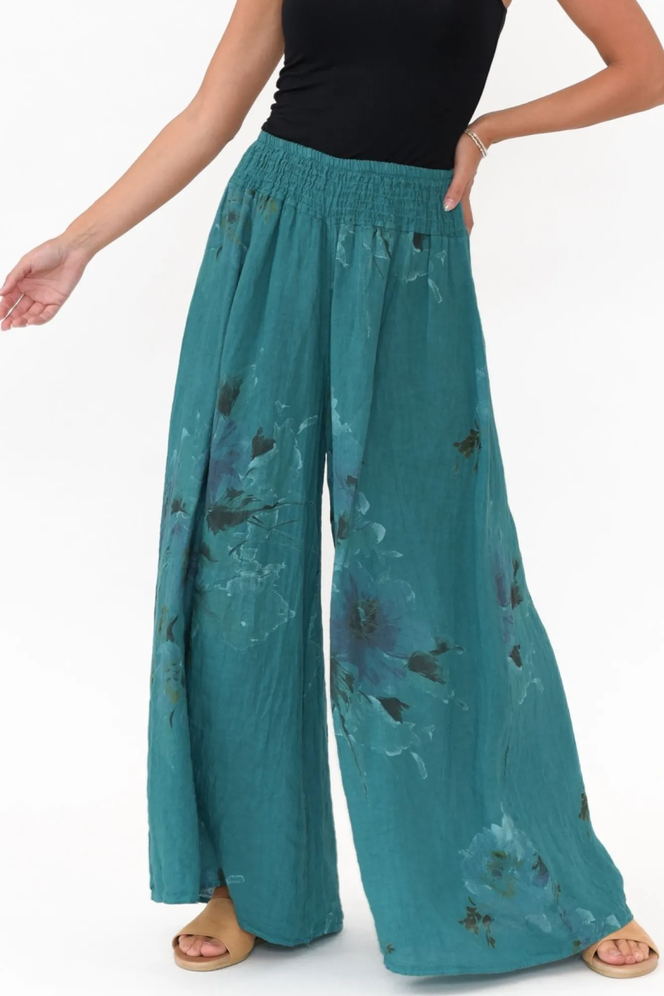 Be the first to review “Pants<Donna Donna Rumi Teal Floral Wide Leg Linen Pant” Cancel reply