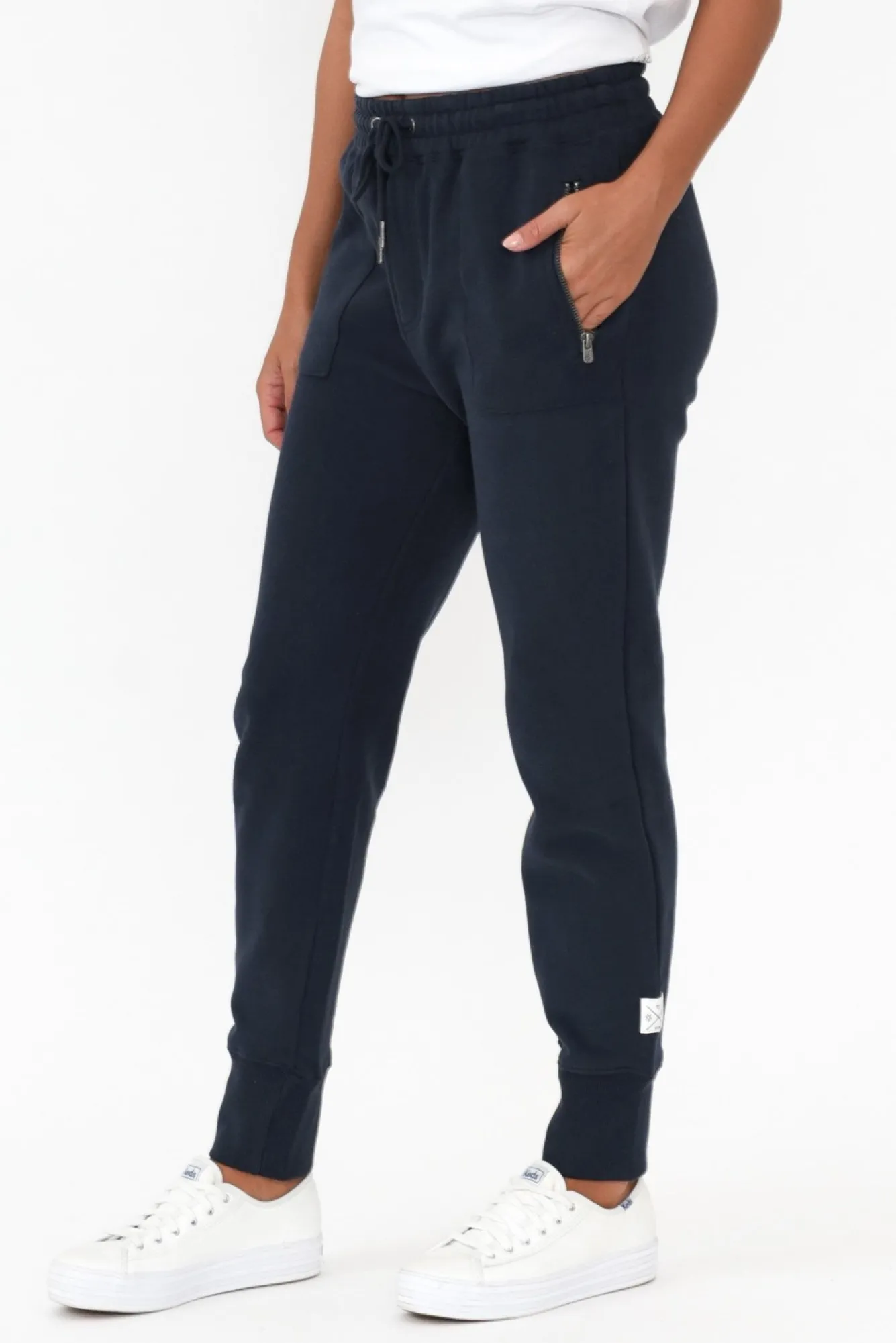 Fit: True To Size. Refer To Size & Fit Tab Below For Specific Size Recommendation NNfabric: 100% CottonNcosy Midweight, Non-Stretch Cotton Fabric With A Plush Fleece LiningNNwide Ruched Elasticated Waistband With Adjustable Drawstring Tie NNcomfortable Jogger Silhouette With Subtle Tapering At The Hem Ntwo Front Pockets With Zip Closures And Exposed Stitching Detail Nfeaturing Fun Embroidery Detailing On The Right PocketNribbed Hem Reaches Ankle Length NNNcare: Cool Gentle Machine Wash RecommendedNNcolour: True Navy Shade