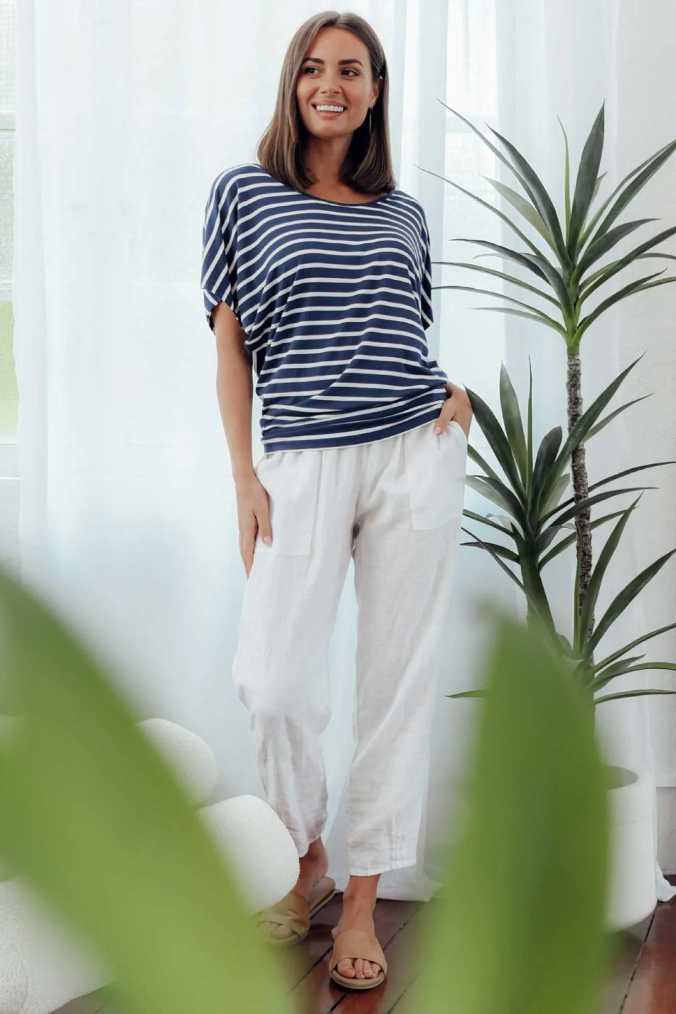Fit: True. Refer To Size & Fit Tab Below For Specific Size RecommendationNNfabric: Main: 100% Linen Waistband: 95% Cotton, 5% ElastaneNlightweight, Soft And Ultra-Breathable Linen PantNslightly Sheer Fabric, We Recommend Wearing Nude UndergarmentsNdesigned With A Mid-Rise Thick Elasticated Stretchy Waist BandNgathering Detail Falls From The WaistNslim-Fit Leg Offers Ease Of Movement And ComfortNNslightly Cropped Length – Versatile Pant For All Year RoundNdiscover More Trendy Clothes From Gordon Smith ClothesNNNcare: Cool Gentle Hand Wash RecommendedNNcolour: Cool White