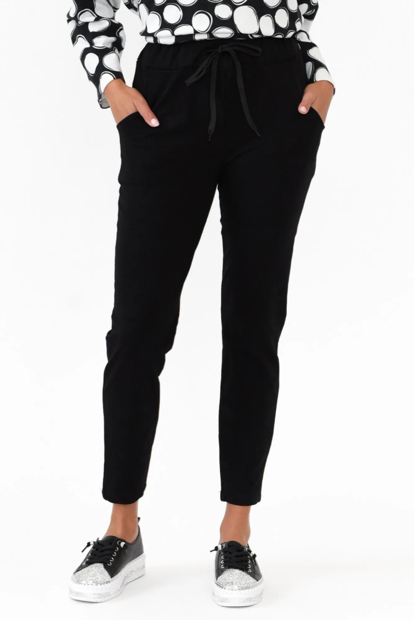 Fit: True To Size. Refer To Size & Fit Tab Below For Specific Size RecommendationNNfabric: 100% CottonNplush And Smooth Cotton Pant With Breathable Qualities And A Lovely StretchNNrelaxed Jogger SilhouetteNstretchy Drawstring Waist Sits Just Below The Belly-Button For All-Day ComfortNtwo Front PocketsNNstraight Hem Falls To An Ankle LengthNNNcare: Cool Gentle Hand Wash RecommendedNNcolour: Midnight Black