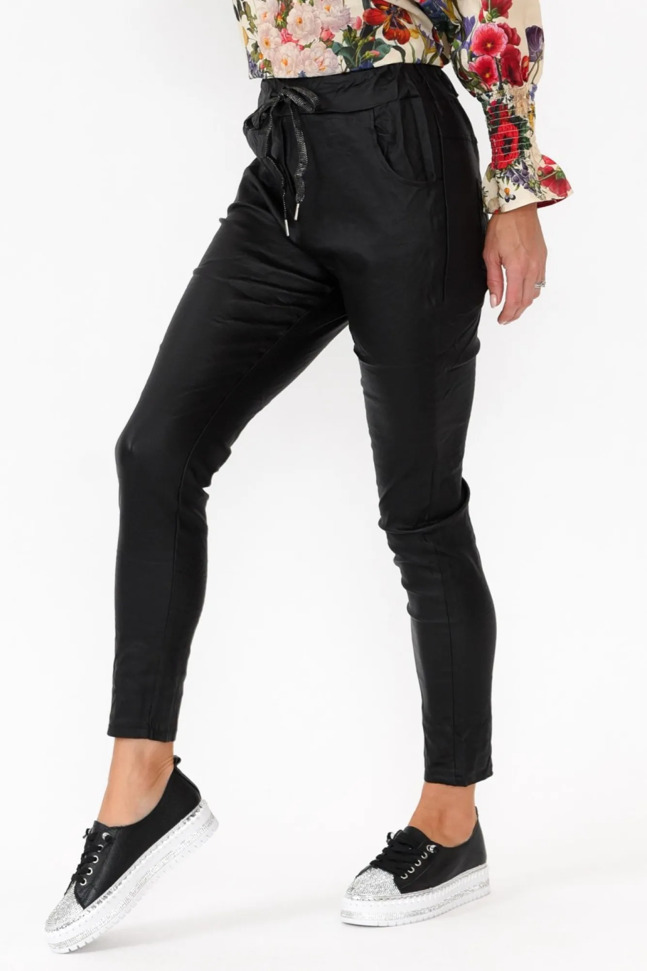 Pants<Indigo Designs Jacinta Black Wet Look Stretch Pant
