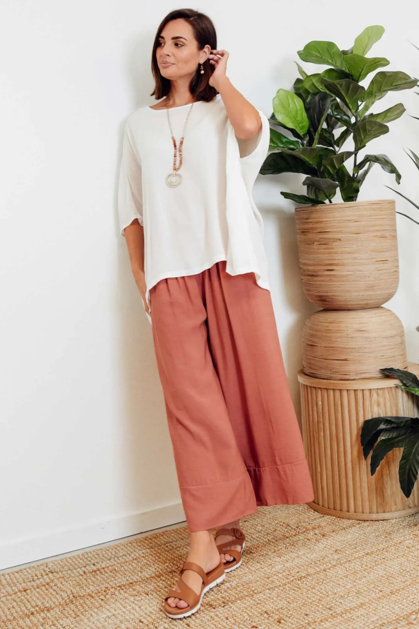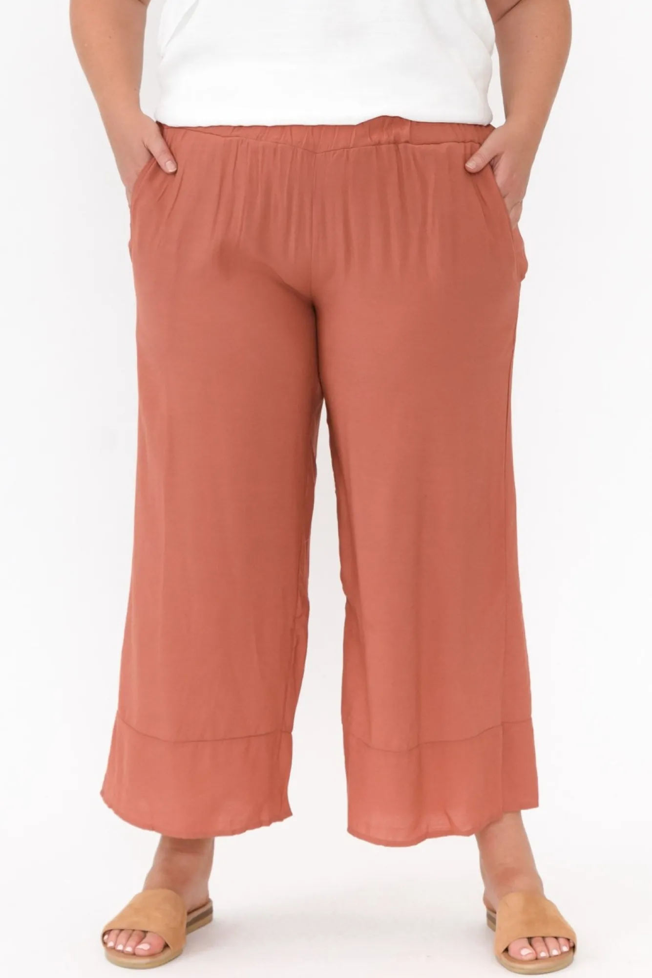 Fit: True To Size. Refer To Size & Fit Tab Below For Specific Size Recommendation NNfabric: Cotton BlendNthe Perfect Breezy Summer Wide Leg PantNmade From Lovely Lightweight, Breathable And Soft Cotton Blend Fabric NNelasticated Ruched Waistband For Ultimate Comfort Nfeaturing Seam Detailing Near Hem NNrelaxed Wide Leg Silhouette – A Summer Wardrobe Must Have!Ntwo Front Hip Pockets NNstraight Hem Falls To Ankle Length NNNcare: Cool Gentle Hand Wash RecommendedNNcolour: Gorgeous Terracotta Rust Shade