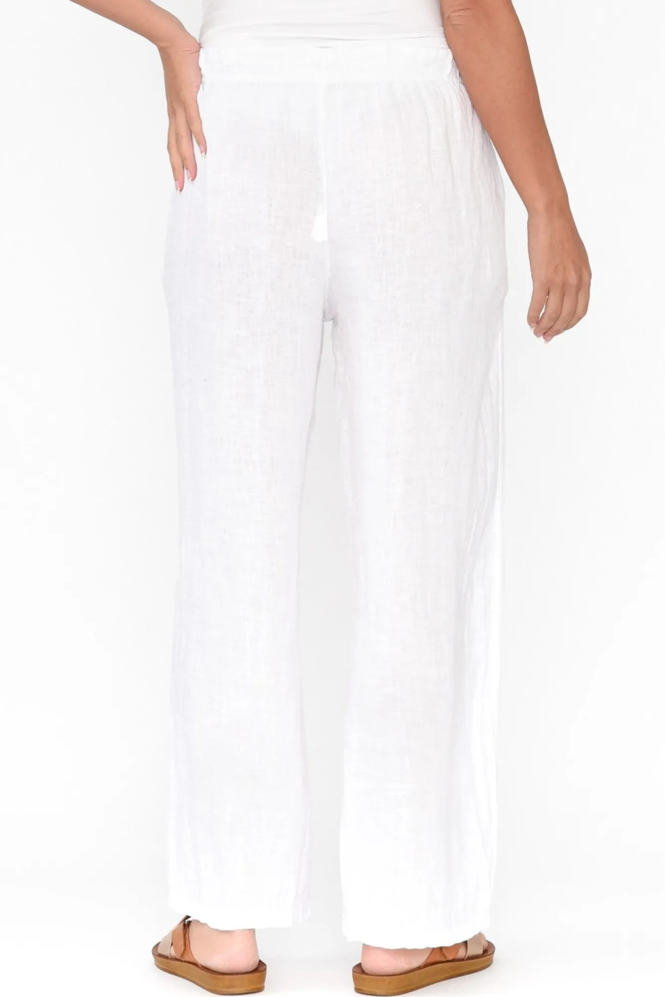 Fit: True To Size. Refer To Size & Fit Tab Below For Specific Size RecommendationNNfabric: 100% LinenNultra-Lightweight, Breathable And Non-Stretch Italian-Made Linen NNfabric Is Sheer, We Recommend Pairing With Nude Undergarments Or Layering Over Swimwear As A Beach Coverup Ngathered Elasticated Waist With A Fixed Faux Tie Detail NNfoil Detail On Waist Front Complements The Leopard And Stud Star EmbellishmentsNversatile Straight Silhouette NNtwo Side Seam Pockets NNstraight Hemline Falls To The Ankle NNNcare: Cool Gentle Machine Wash RecommendedNNcolour: Crisp White With Fabulous Leopard And Stud Star Embellishments