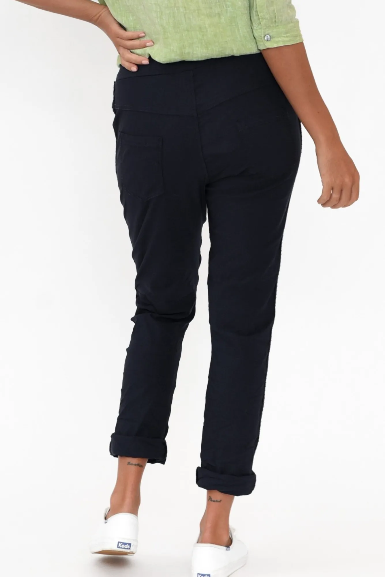 Fit:True To Size. Refer To Size & Fit Tab Below For Specific Size RecommendationNNfabric:75% Viscose, 22% Nylon, 3% ElastaneNlightweight, Soft And Stretchy Fabric With A No-Fuss Crinkle FinishNNcomfortable Elasticated Waistband With Adjustable Drawstring TieNelevated Jogger Silhouette Elevated By Silver Stud Detailing On Side SeamsNNfour Functional Pocket Design -Two Hip Pockets And Two Back PocketsNNfalls To Ankle Length – Can Be Cuffed For A Cropped LookNNNcare:Cool Gentle Hand Wash RecommendedNNcolour: Deep Navy
