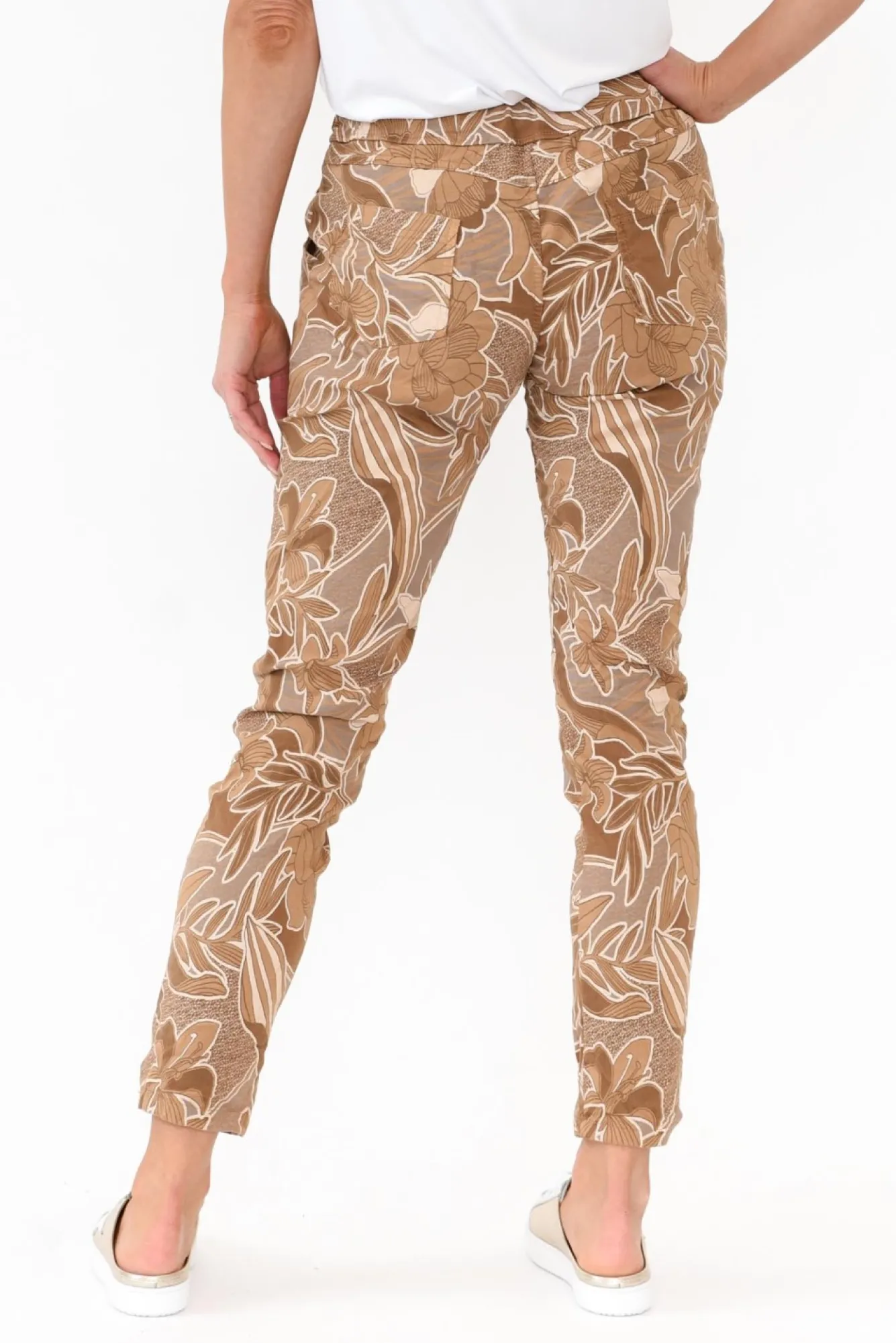 Fit: True To Size. Refer To Size & Fit Tab Below For Specific Size RecommendationNNfabric: 77% Viscose, 18% Polyamide, 5% ElastaneNcrafted In Italy From A Lightweight And Stretchy Viscose Blend Featuring A Crisp, Textured Hand Feel And A Fuss-Free Crinkled Texture Nstretch Waistband With A Drawstring For All-Day Comfort Nrelaxed, Straight Leg SilhouetteNNfour Functional Pockets – Two At The Front, Two At The BackNNfull-Length Falls To The AnklesNNNcare: Cool Gentle Machine Wash RecommendedNNcolour: Tan Brown With A Lovely Floral Overlay