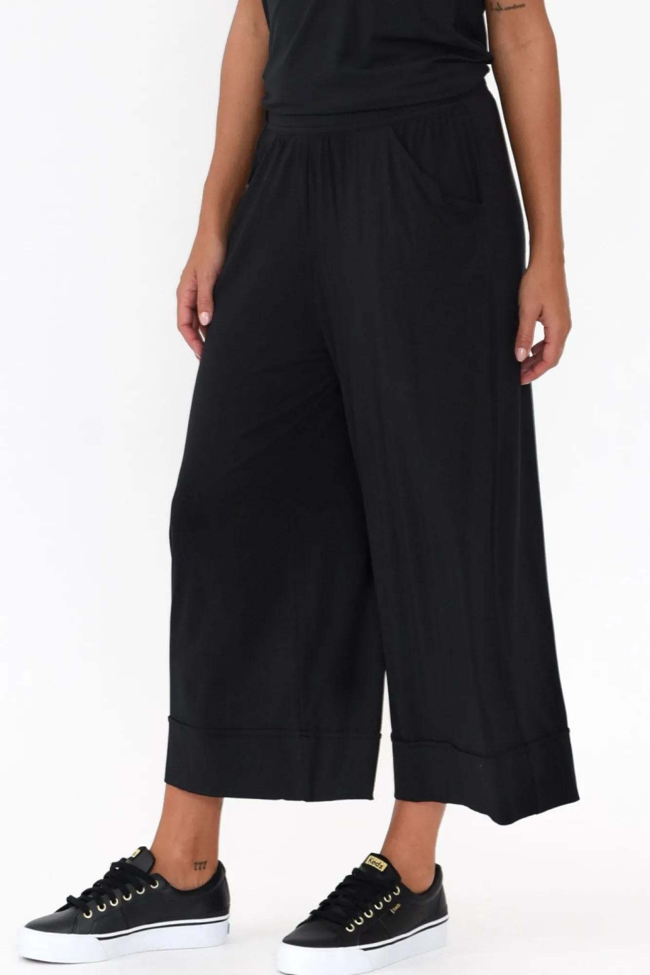Fit: True. Refer To Size & Fit Tab Below For Specific Size Recommendation NNfabric: 96% Micromodal®Air, 4% LycraNlightweight, Ultra-Soft And Stretchy Micro Modal Fabric Made From Sustainably Sourced Beechwood FibresNelastic Stretch Back Waistband With Fitted Flat Front Panel For A Smooth FitNtwo Side PocketsNwide Leg Culottes DesignNpanel Detail At HemNNcare: Cool Gentle Machine Wash RecommendedNNcolour: Black Shade