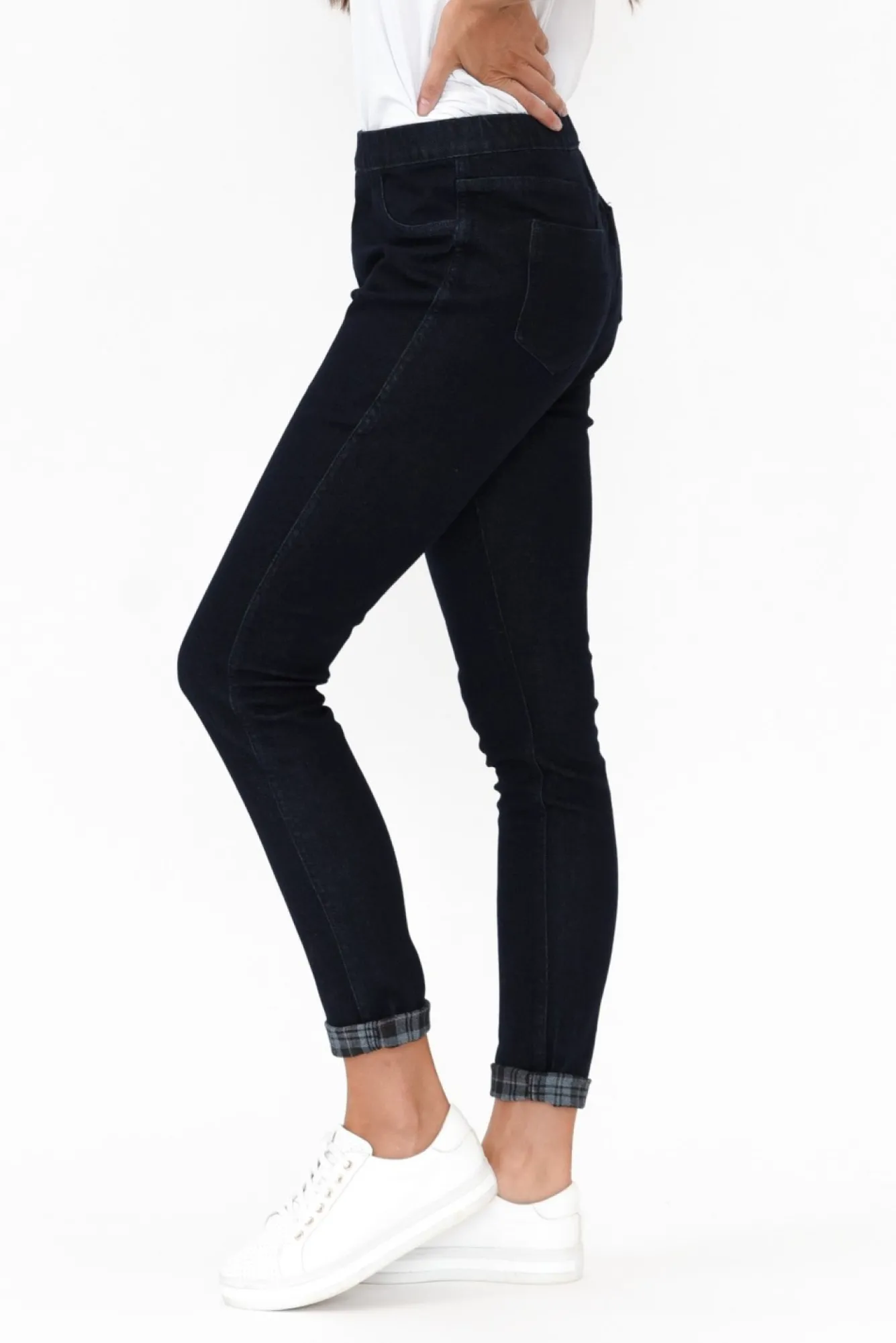 Fit: True To Size. Refer To Size & Fit Tab Below For Specific Size Recommendation NNfabric: 98% Cotton, 2% ElastaneNmidweight, Stretchy Denim-Feel Cotton Pants NNreversible Design Allows For Endless Styling Options – Chose Between A Navy Wash Or Check Print! Ncomfortable Stretch Elastic Waistband With Ample RoomNfigure-Hugging Slim Leg DesignNNfunctional Back Pockets On Both SidesNNfull Length Style Skims The Ankle NNcare: Cool Gentle Machine Wash RecommendedNNcolour: Reversible – Navy And Check Print