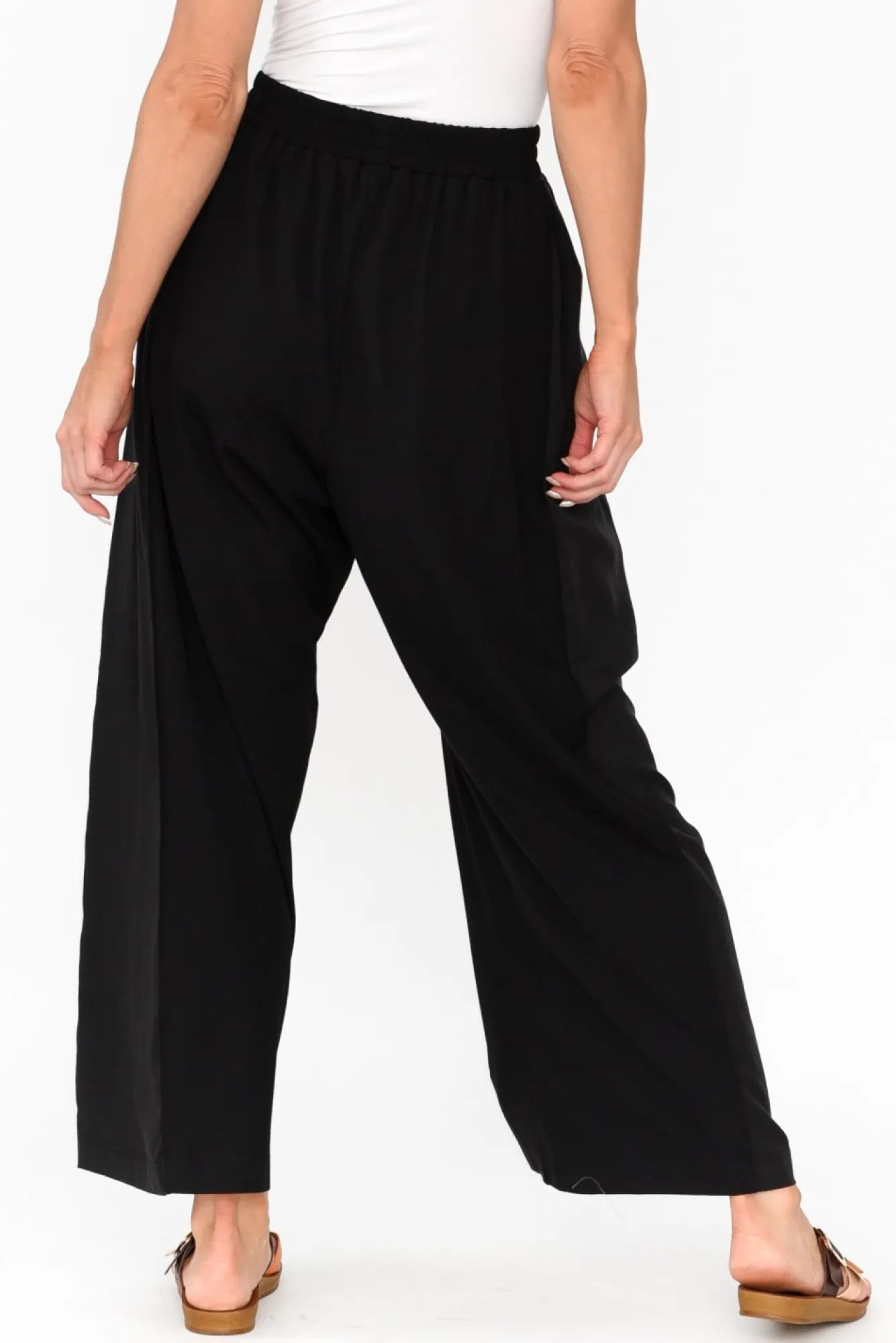 Fit: True To Size. Refer To Size & Fit Tab Below For Specific Size RecommendationNNfabric: Main: 37% Viscose, 35% Nylon, 15% Lyocell, 13% Elastane Contrast: 100% LyocellNlightweight And Silky-Smooth Fabric With An Elevated Sheen NNmid-Rise Ruched Elasticated Waistband NNwide-Leg Palazzo Silhouette With Elevated Contrast Fabric Side Panels NNtwo Pockets Located In Side Seams NNstraight Hemline Falls To The Ankle NNNcare: Cool Gentle Machine Wash RecommendedNNcolour: Midnight Black