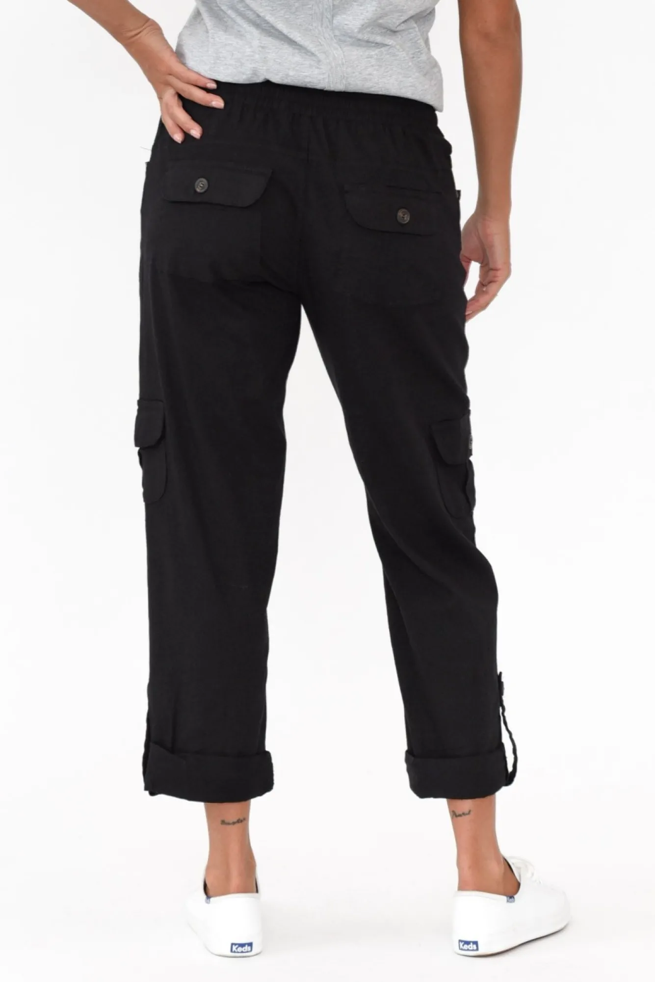 Fit: True To Size. Refer To Size & Fit Tab Below For Specific Size RecommendationNNfabric: 85% Rayon 12% Linen 3% SpandexNcomfortable Linen Blend Fabric With A Classic Woven FeelNNruched Elasticated Waist With Adjustable DrawstringNtimeless Straight-Leg Silhouette With Two Front And Back PocketsNtwo Feature Pockets With Button Closure Located Mid LegNstylish Cuffed Hem Secured By Feature ButtonNfalls Just Above LengthNNNcare: Cool Gentle Hand Wash RecommendedNNcolour: Midnight Black Shade