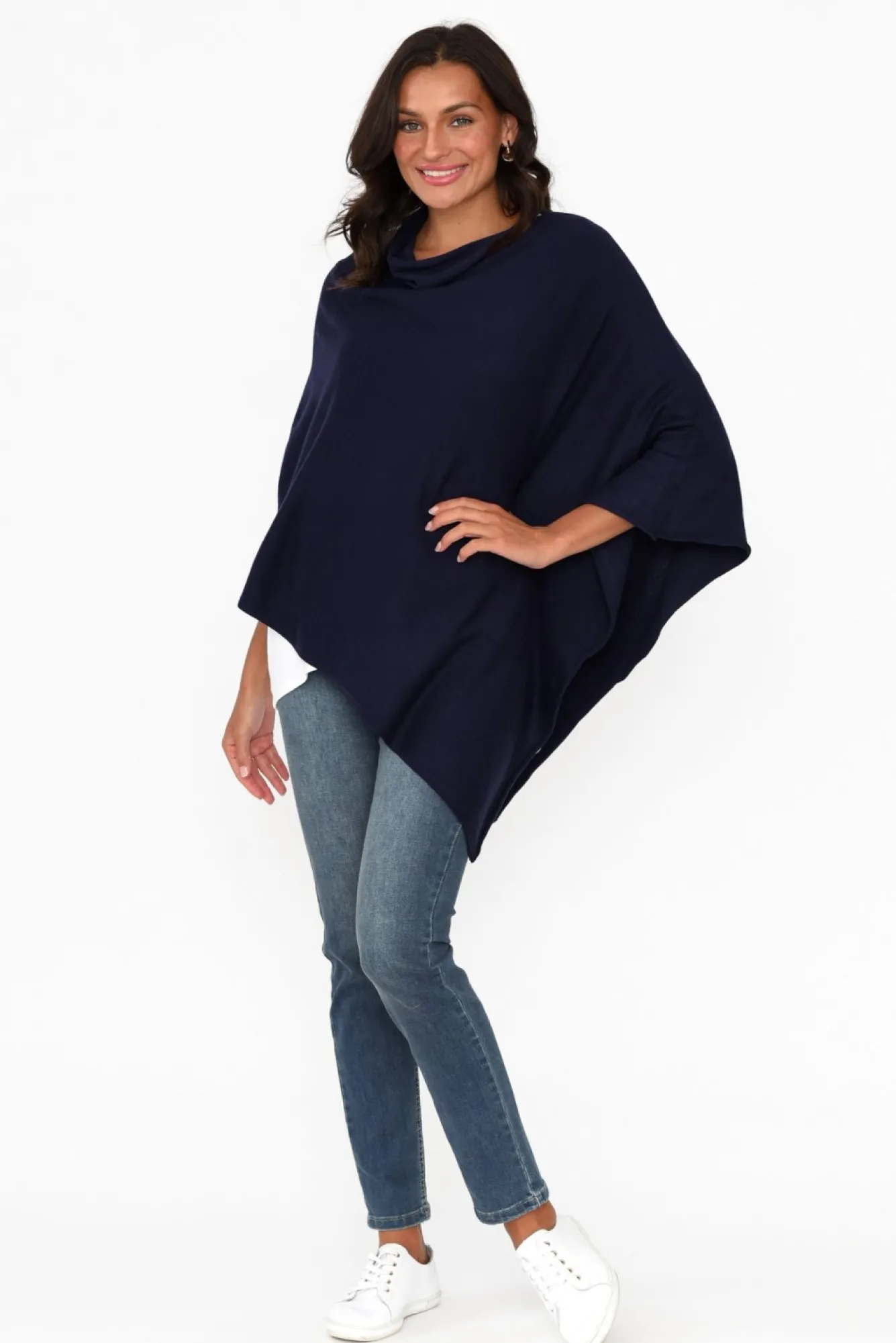 Fit: One Size. Refer To Size & Fit Tab Below For Specific Size RecommendationNNfabric: 50% Wool, 50% ViscoseNwool-Blend Is Soft Against The Skin And Has A Stretchy Handfeel NNrectangular-Cut Design Creates A Flattering Draped SilhouetteNasymmetric Neckline That Can Be Adjusted To Provide Endless Styling OptionsNNhip Skimming Length Featuring A Rolled Hem For A Refined Look Na Standout In Our Poncho CollectionNNcare: Cool Gentle Hand Wash RecommendedNNcolour: Midnight Blue