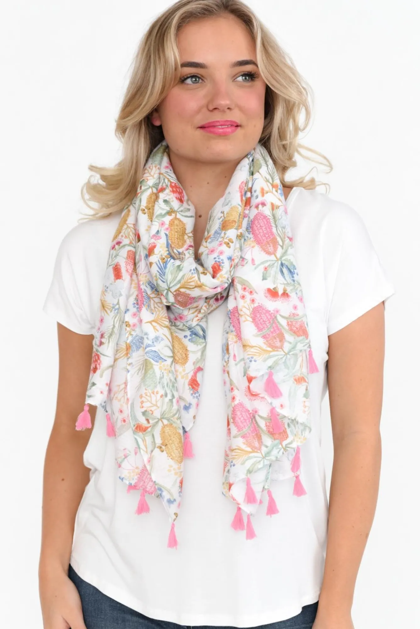 Crafted In Graceful Design, This Exquisite Scarf Invites The Wearer To Take Risks And Make Daring Moves.Nbanksia Flower And Bottle Brush PatternNNcolour: Multi Coloured Floral DesignNNNfabric: Lightweight Soft Viscose Ncare: Hand Wash OnlyNdimensions: 180Cm X 81Cm