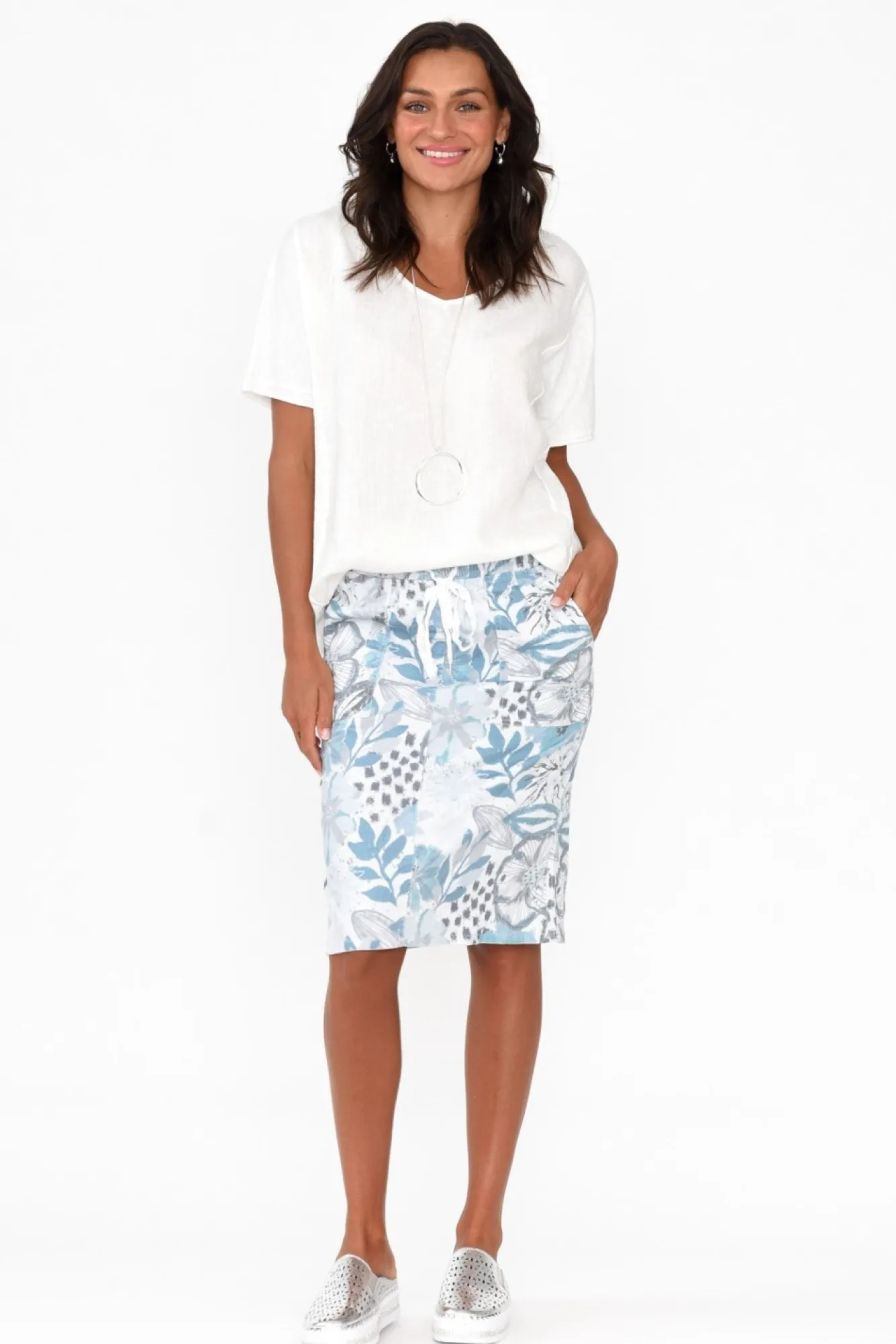 Skirts<Cafe Latte Julissa Blue Floral Drawstring Skirt